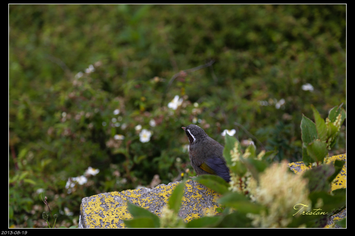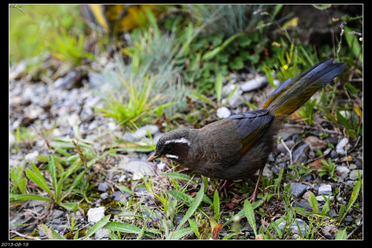 山徑有不怕人的金翼白眉,真不怕人。可能被人餵慣了,一直跟著人,算我怕你行吧?
