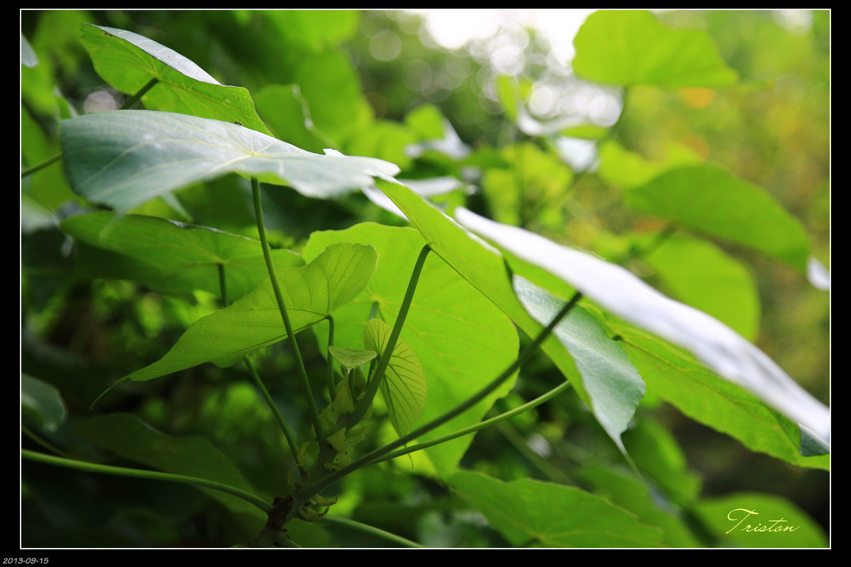 構樹的生長葉。構樹葉形轉變的順序為心形葉→缺刻狀葉→深裂葉。根據研究發現在陰暗處生長的心形葉,為了要爭奪更多的陽光,便朝接收陽光面積較大的缺刻葉以及深裂葉的方向轉變,而在陽光充足的地方生長的構樹,由於深裂葉能有效的吸收陽光,便不再改變其葉片的形狀。