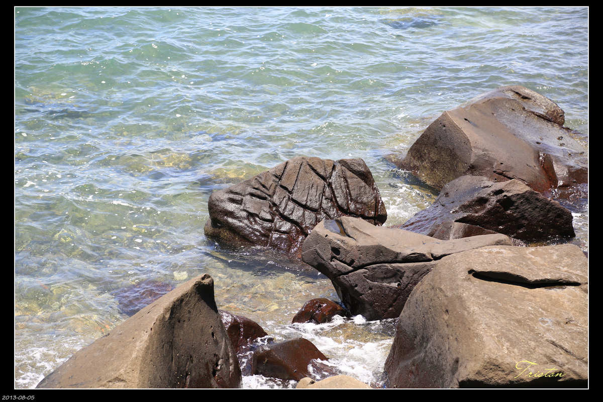來的不是季節,這些由於大屯火山爆發後,遺留海岸邊的火山礁岩,在波浪長期的沖刷下,質地鬆軟的部份被侵蝕,留下較堅硬的部份而形成的溝槽,就真的乖乖地變成石頭色,但是一到春天三四月,石頭上就長出「石蓴」、「裂片石蓴」和「扁石髮」等綠色的海藻。不知道這是不是我們在吃的髮菜??