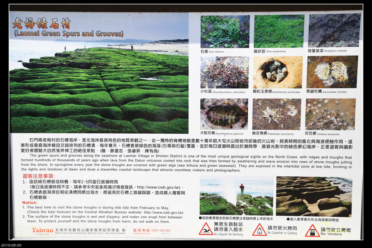 反正到了四月份東北季風漸歇,石槽就會長滿了一大片綠色的海藻,形成了令人驚嘆不已的「綠石槽」海岸景觀。