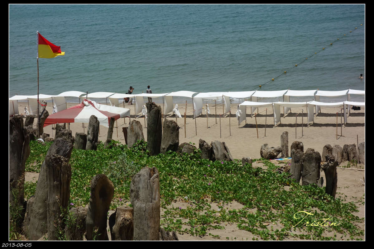 像國外一樣,搭了白色的遮陽棚,非假日,沒幾隻貓!但是北部沙灘少正妹多,假日一定人滿為患的啦!