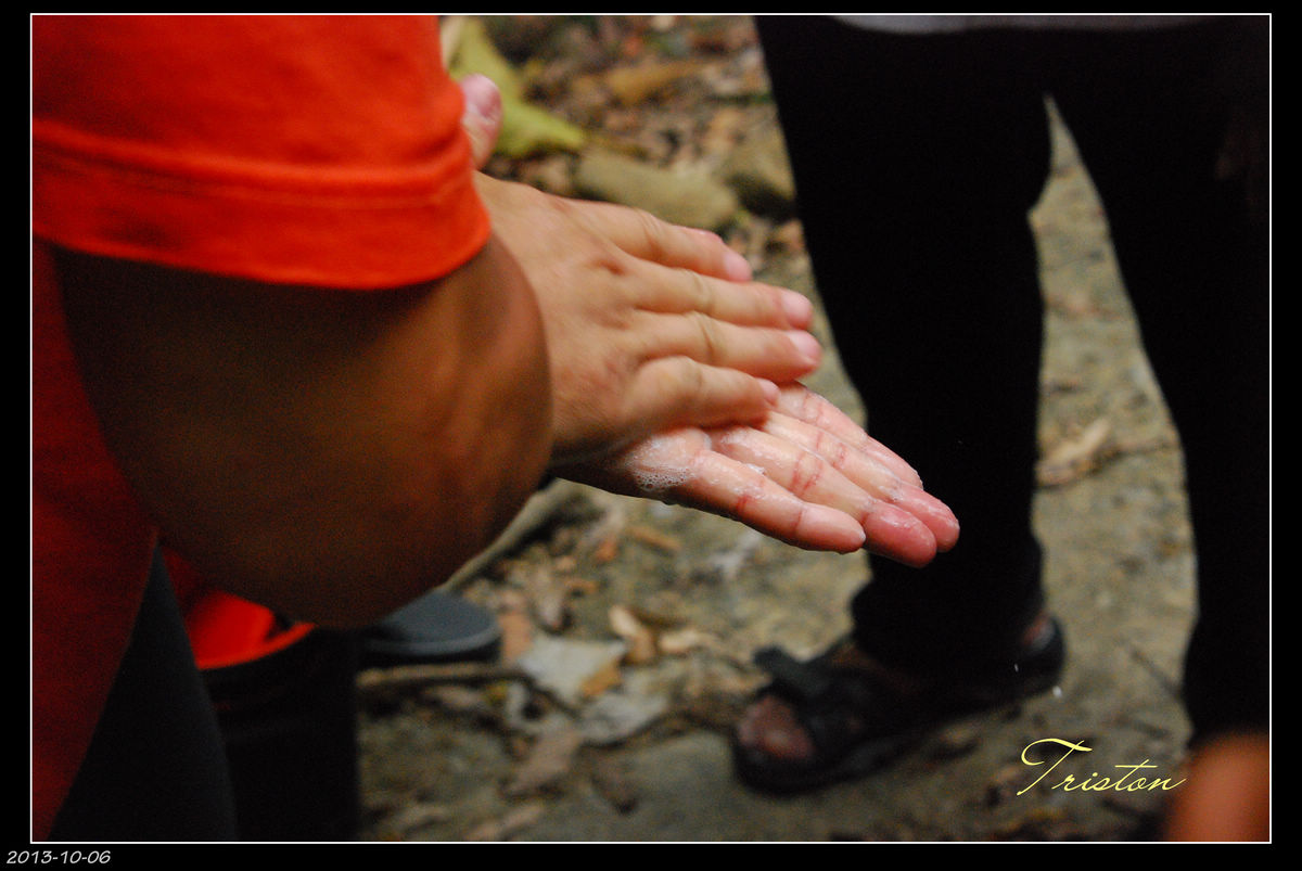 依依不捨地離開瀑布,專家撿起地上的無患子,無患子的果實內含有豐富的皂素,剝去外皮用水搓一搓就會起泡囉