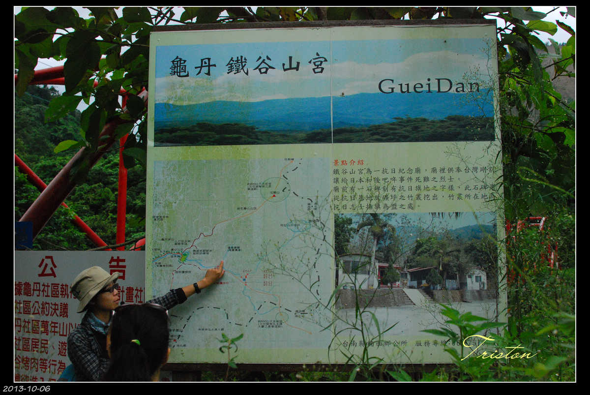 龜丹之前只來過一次,而且只走到外頭的溫泉區,這麼深山林內還是第一次進來。龜丹是西拉雅系平埔族地名,係平埔語「溫泉」或「溫水」之義。本處自古以來,則擁有一天然溫泉。另一說因龜丹溪內有一塊酷似烏龜的巨石而得名,此石尚在,位在「蘆藤腳」楊宅前的溪中,傳說此龜巨大即將成精,玉皇大帝怕其成精害人,乃下令雷公一雷擊斷它的脖子,故剩下今日所見的龜身,而「龜頭」則掉落溪中不知去向。