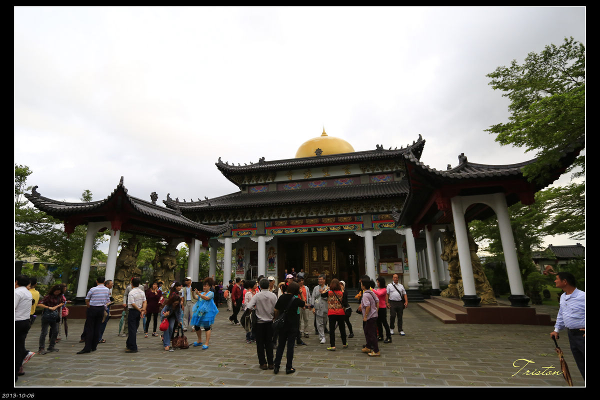 主殿聽說夜景很美,園裡還移植了不少樹齡上百年的緬梔。一邊聽著穿著居士服的導覽員不斷說著什麼名木巨石,氣場多好,價值多高,然後看著他們引著一車車遊客,在搭棚設架的電腦前圈選什麼內政部的宗教百景票選,最後領到準備建殿的場址樂捐,真是,唉!