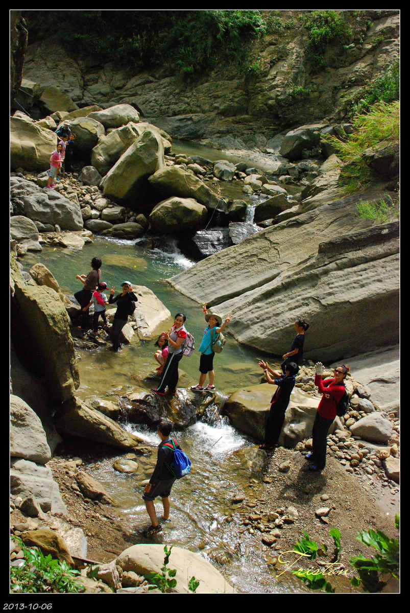 開始溯溪囉!幸好我們都添購了專用的溯溪鞋,在河谷中如履平地哦!(想太多啦!哪有可能啊?)