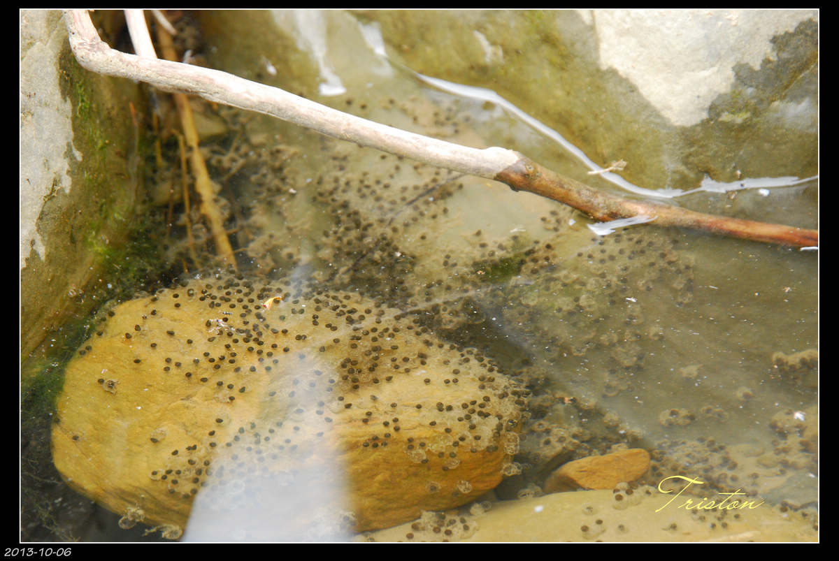 據專家表示:這是梭德氏赤蛙的蛋,聚集成團而後黏在石頭上。避免被水沖走。難怪有種飲料叫"青蛙下蛋"真像....山粉圓.....口味不知如何??