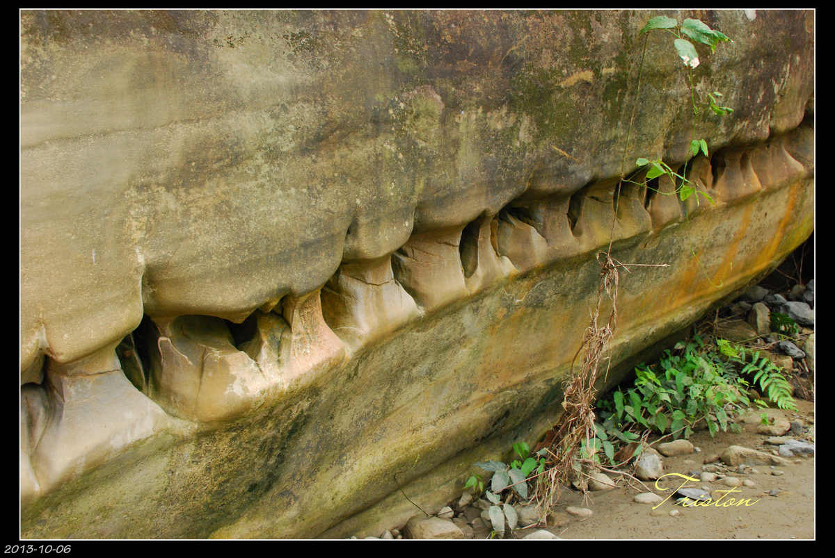 這種岩石不斷在熱脹冷縮中碎裂,又被水流面垂直受蝕,形成很奇怪的蝕面,還是不知道它的學名。