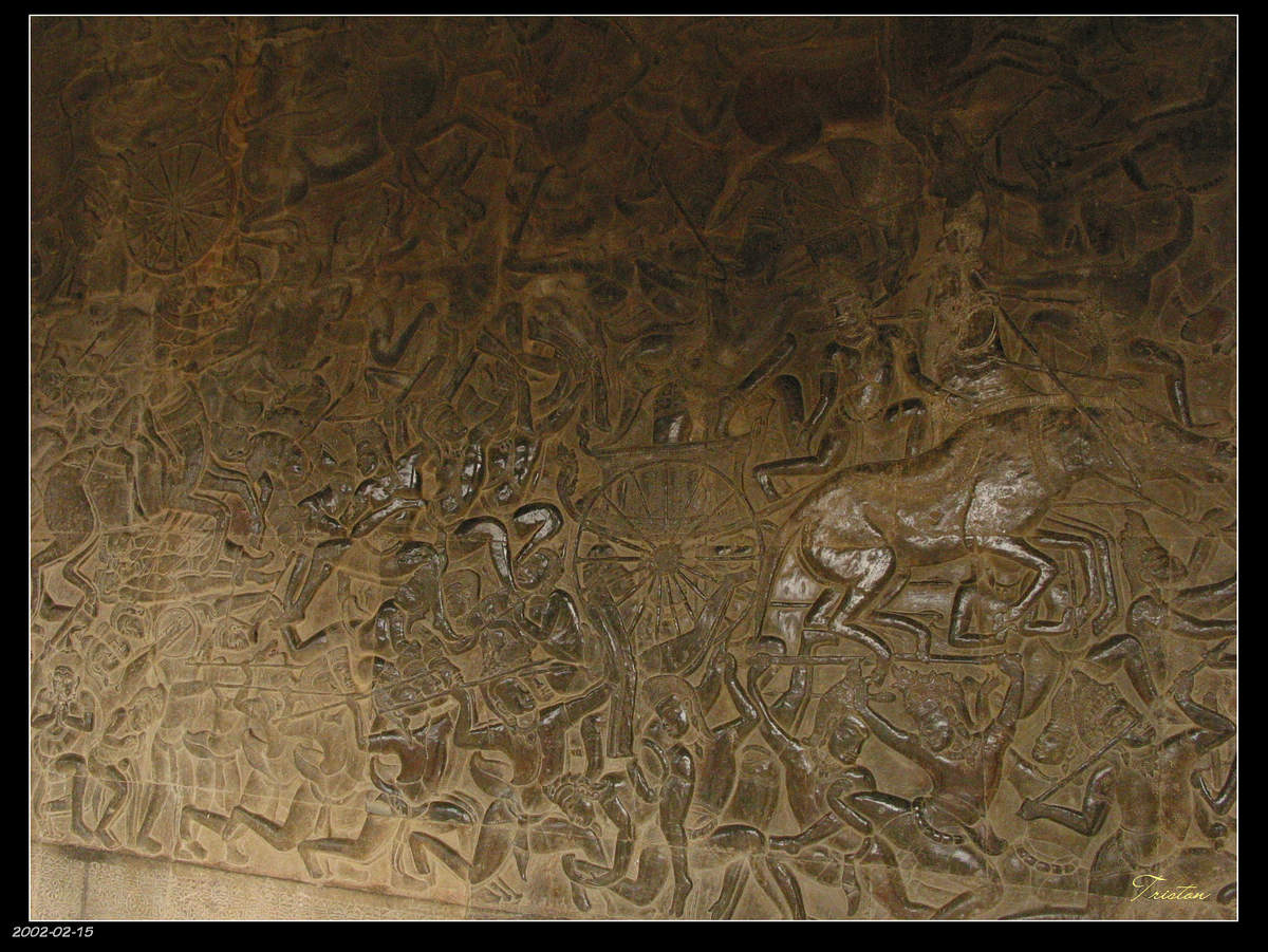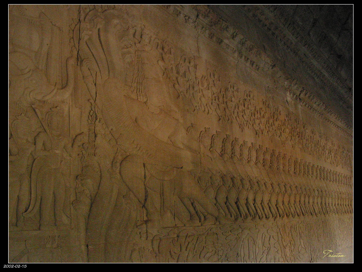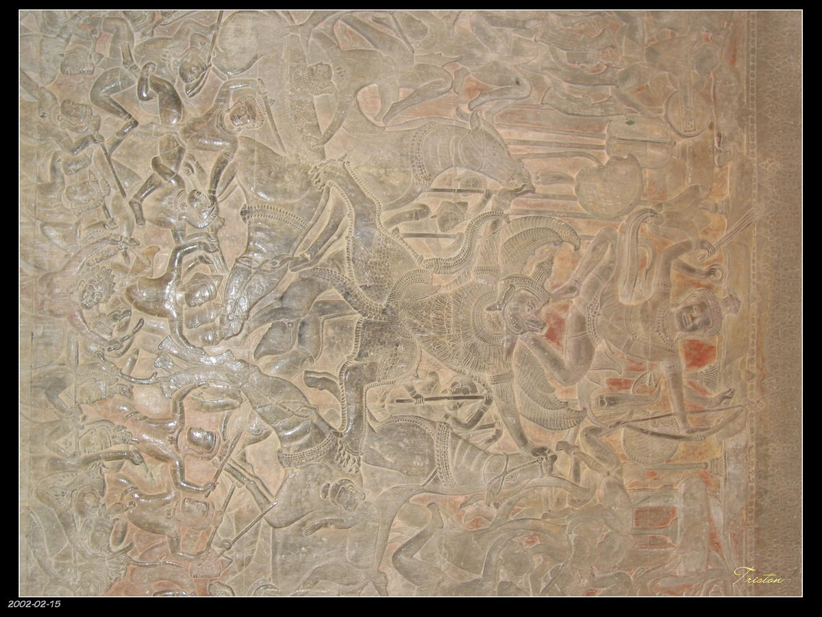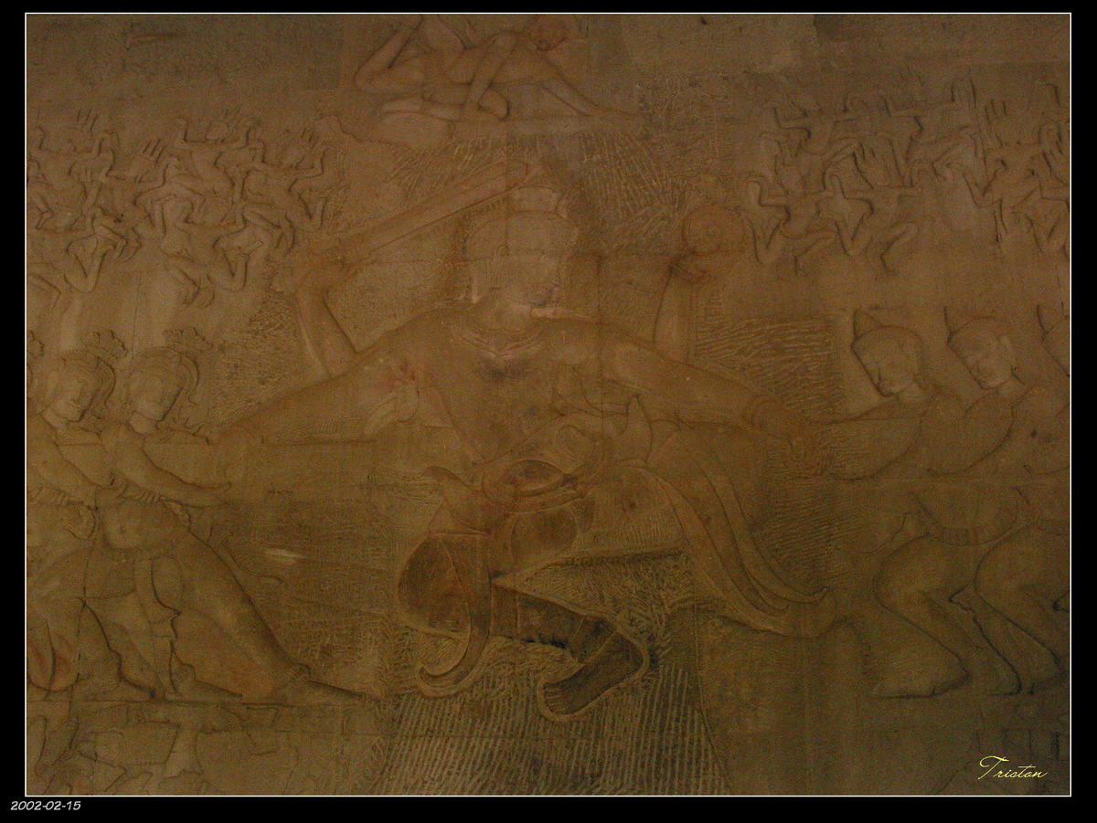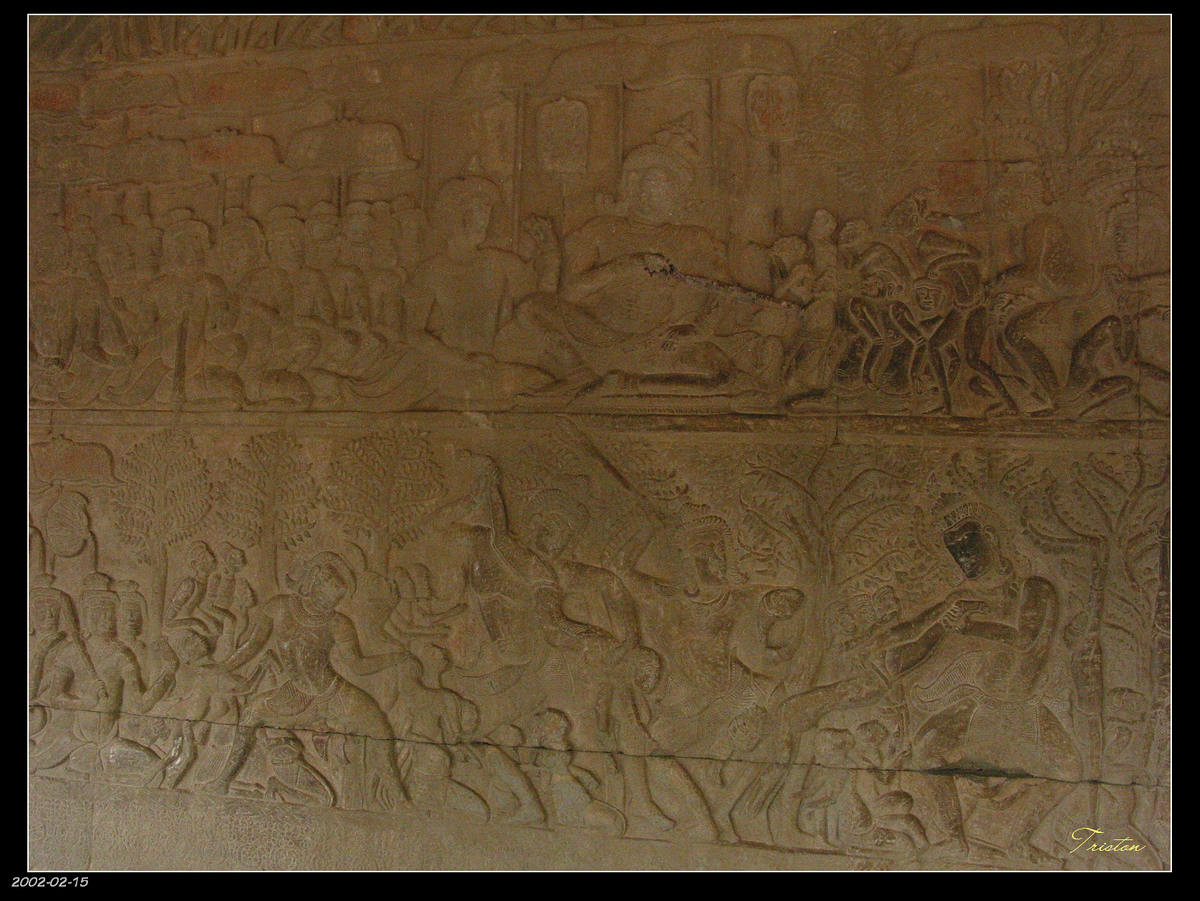 吳哥窟的石雕:北側迴廊上西段是描述眾神和惡神阿修羅的惡戰