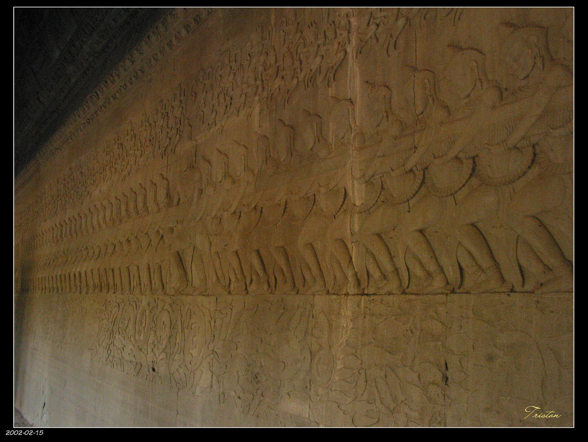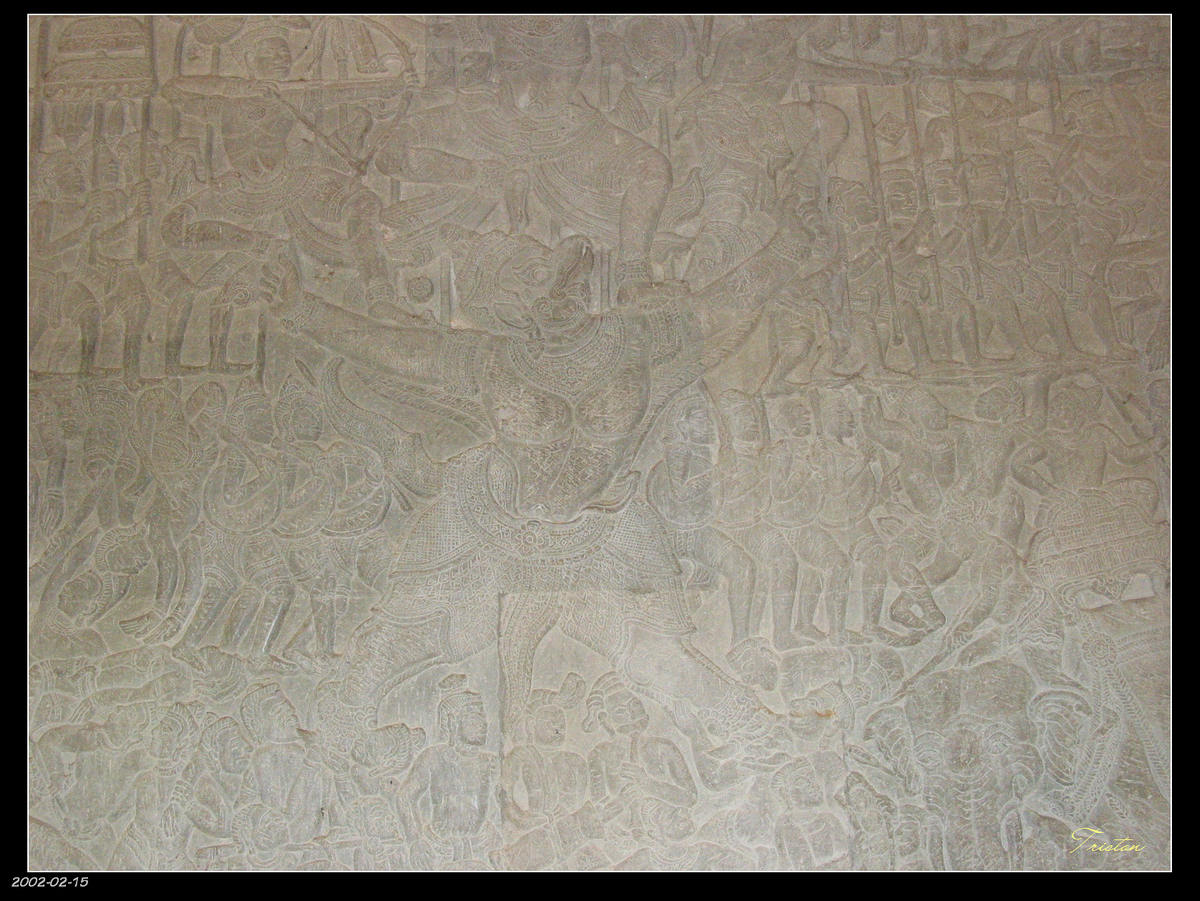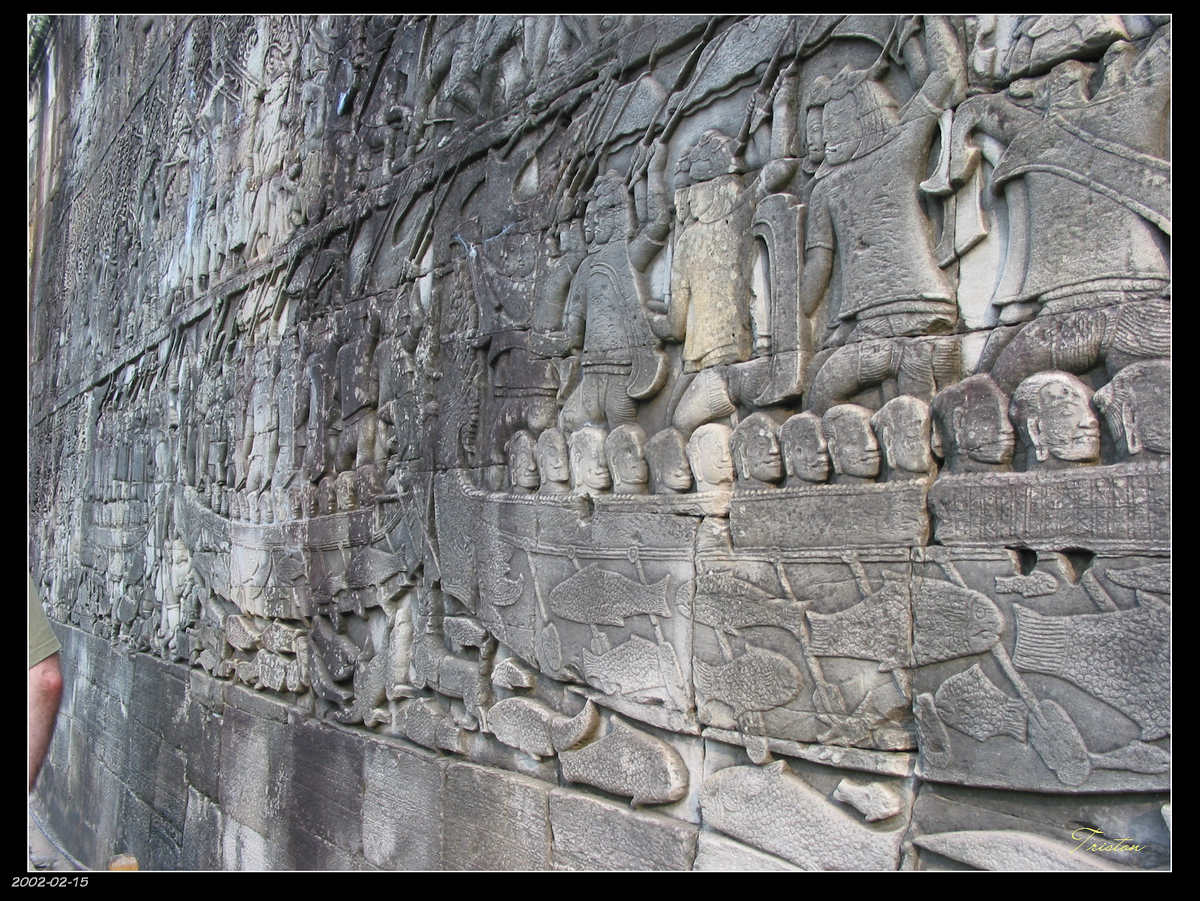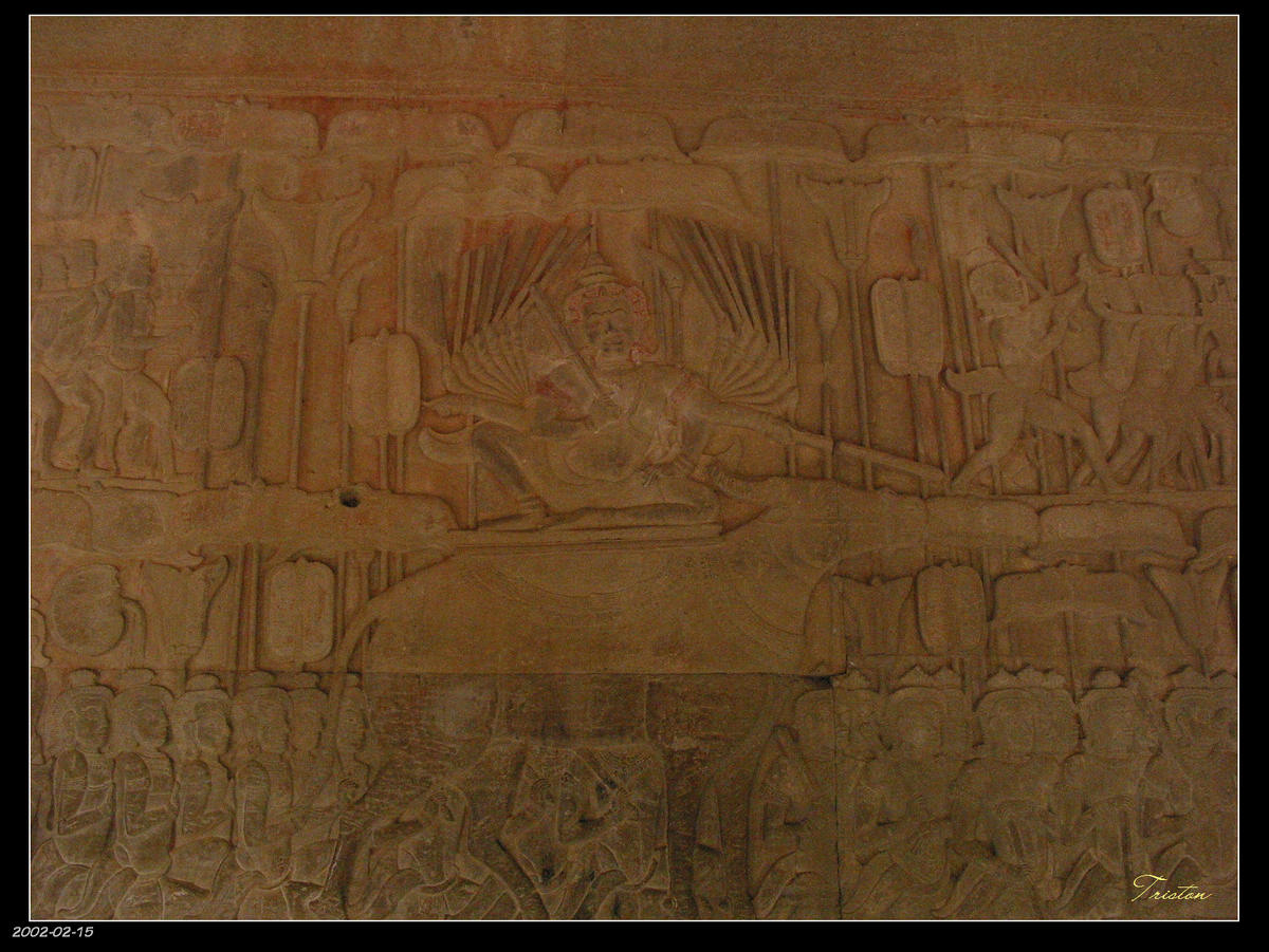 吳哥窟的石雕:北側迴廊上西段是描述眾神和惡神阿修羅的惡戰