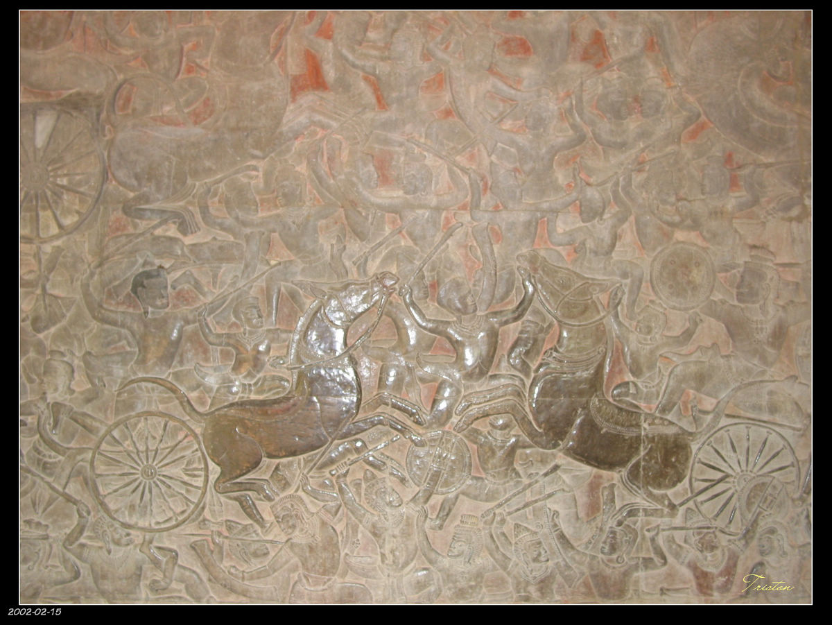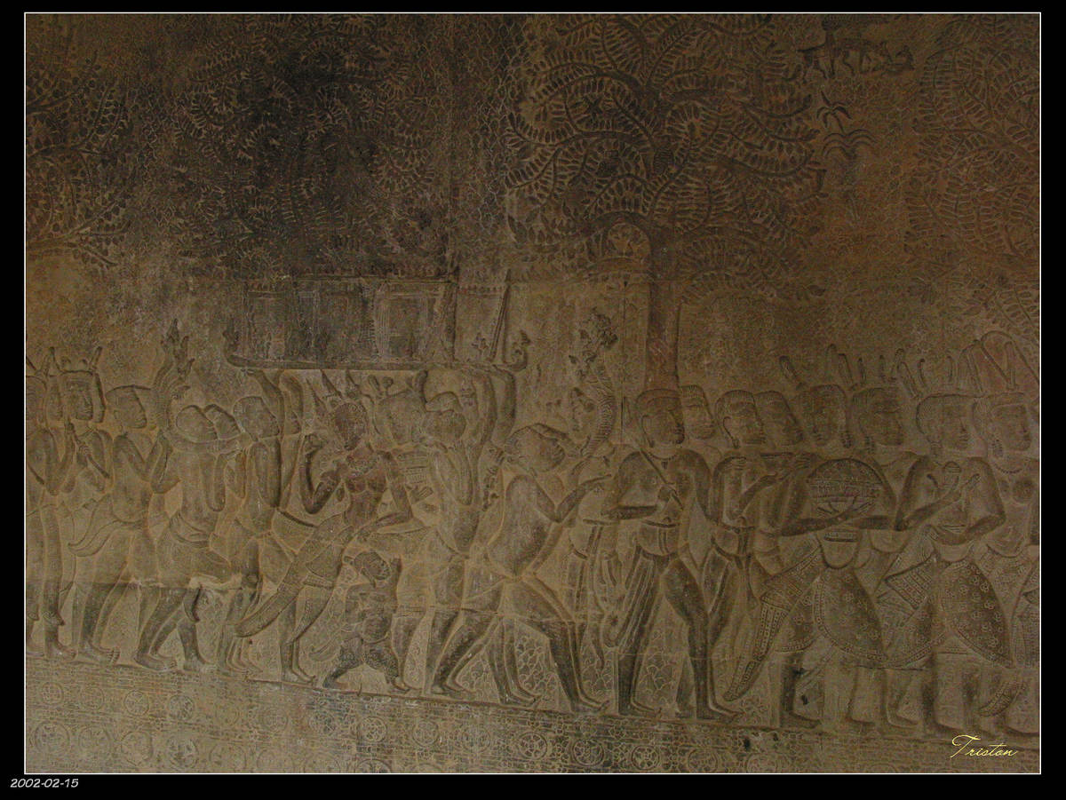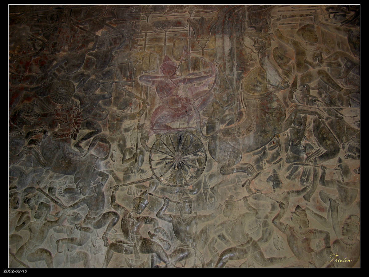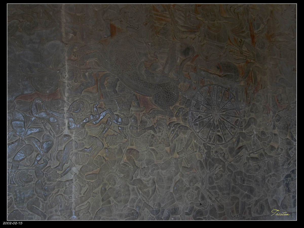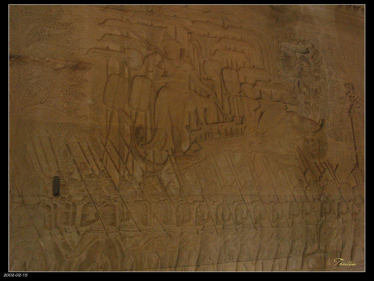 吳哥窟的石雕:北側迴廊上西段是描述眾神和惡神阿修羅的惡戰