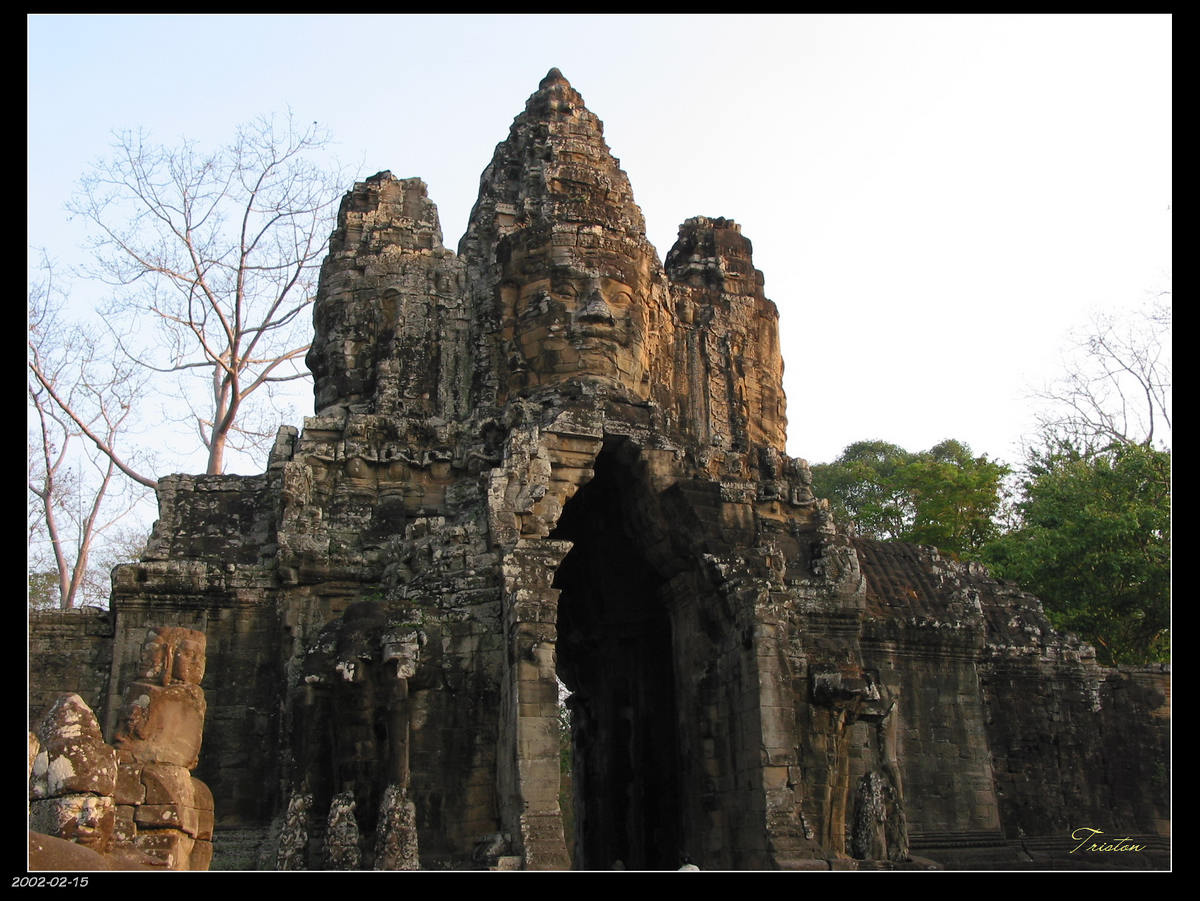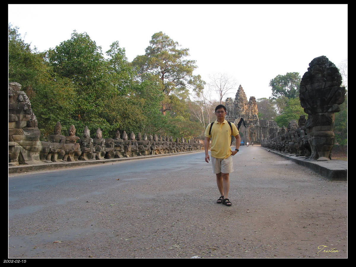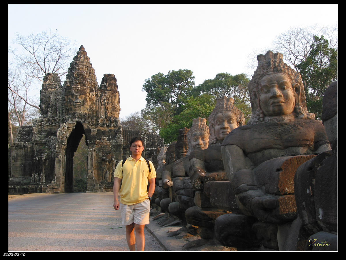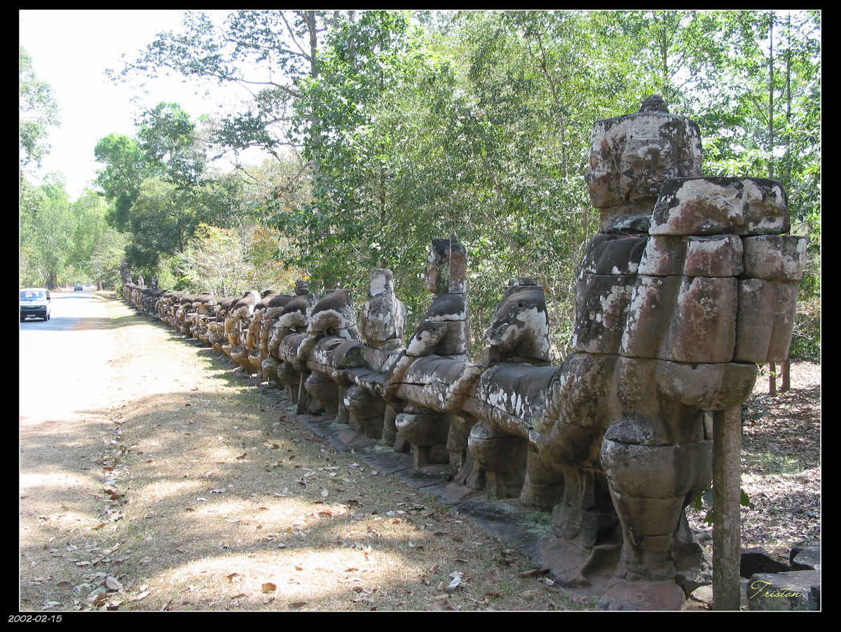 吳哥窟南門south gate..要進入內城必須經過113公尺長的步道,步道左側是54尊阿修羅,右側是54善神雕像,拉扯著巨蛇以爭奪長生不老的聖水,引起"乳海翻騰"的衝突.