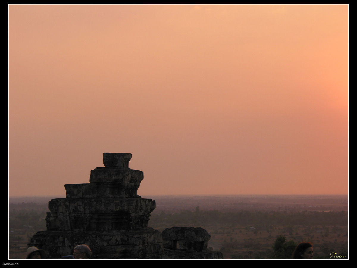 Phome Bakheng巴肯是吳哥城內最高點,其實它是吳哥王朝遷到這裡後的皇都和神殿區,現在只有一個高台上的五座磚塔,是看日出和日落的好地點,一到日落,聚集了不少各國來客。