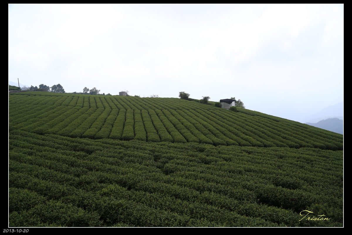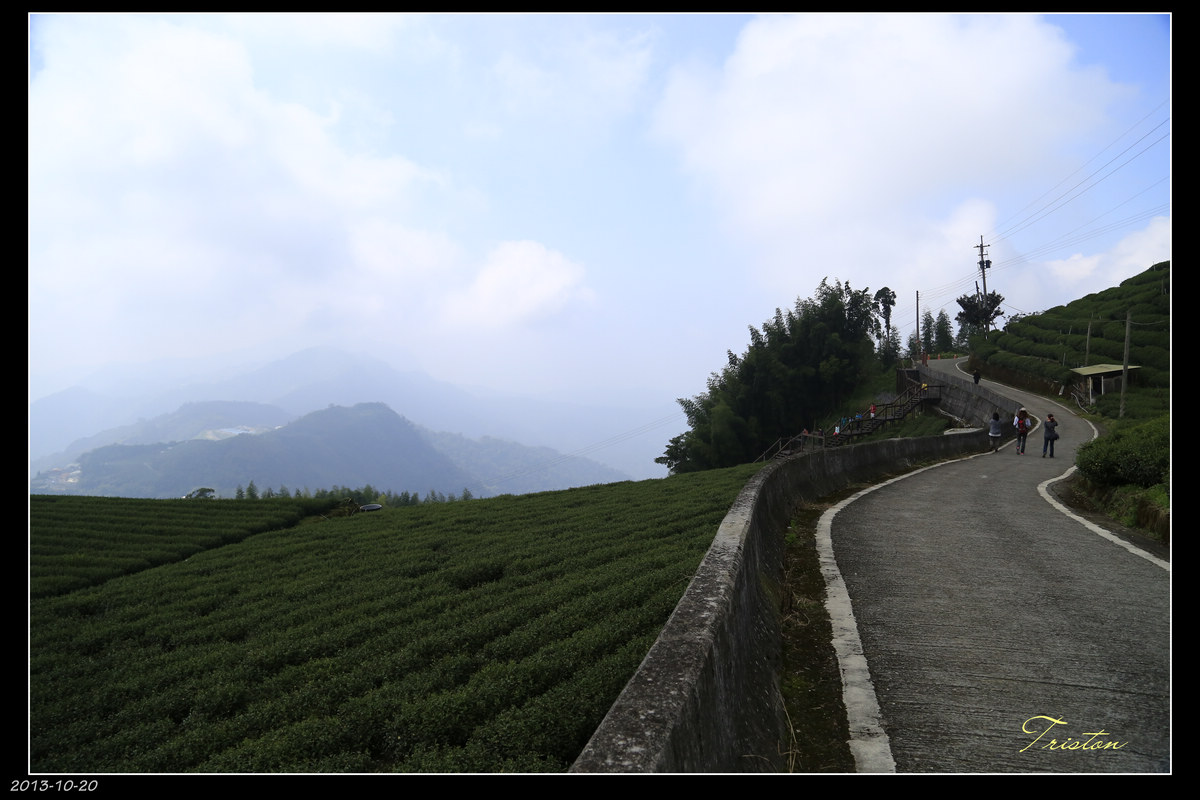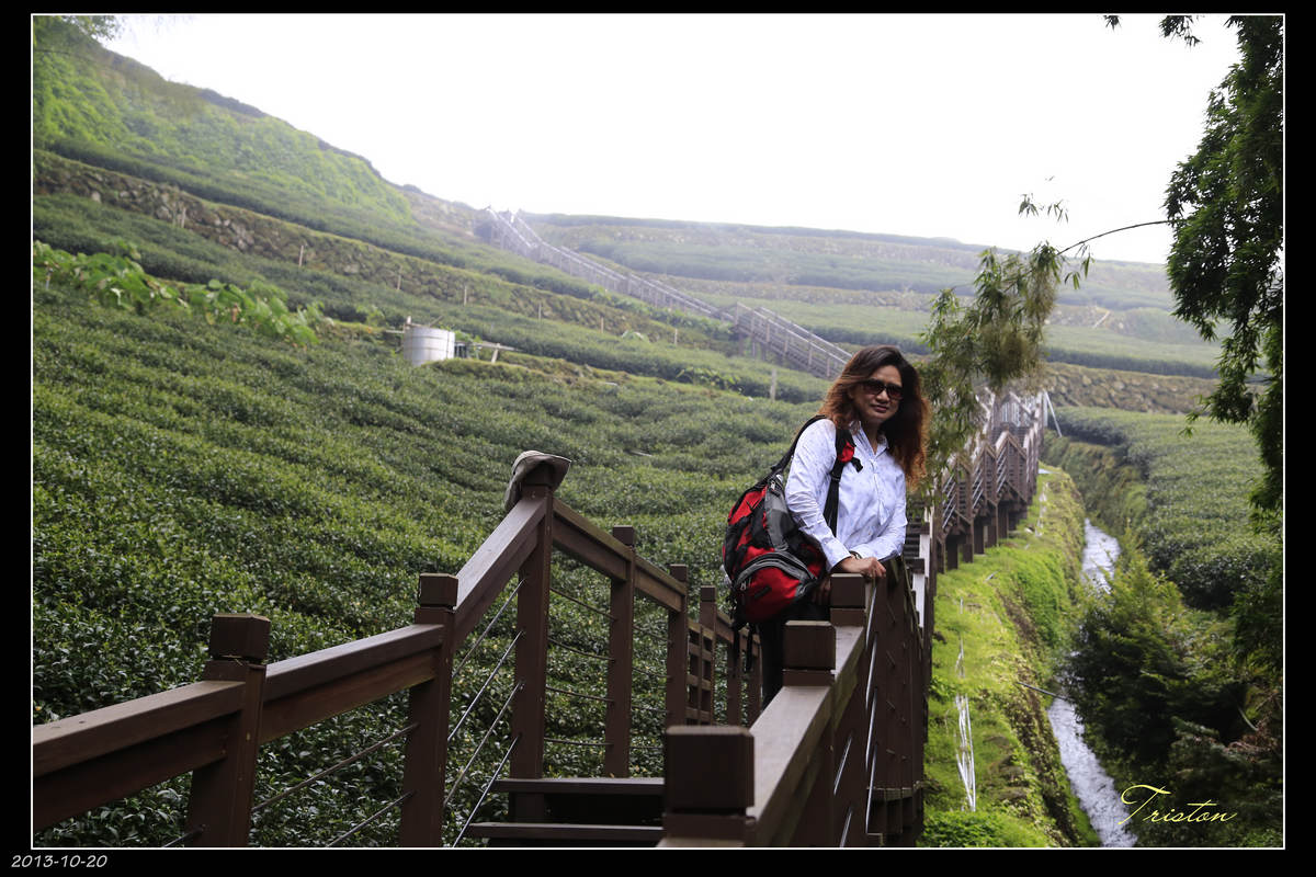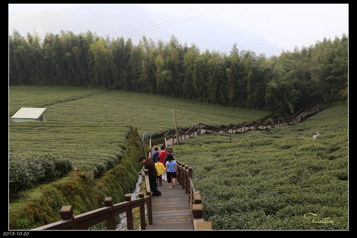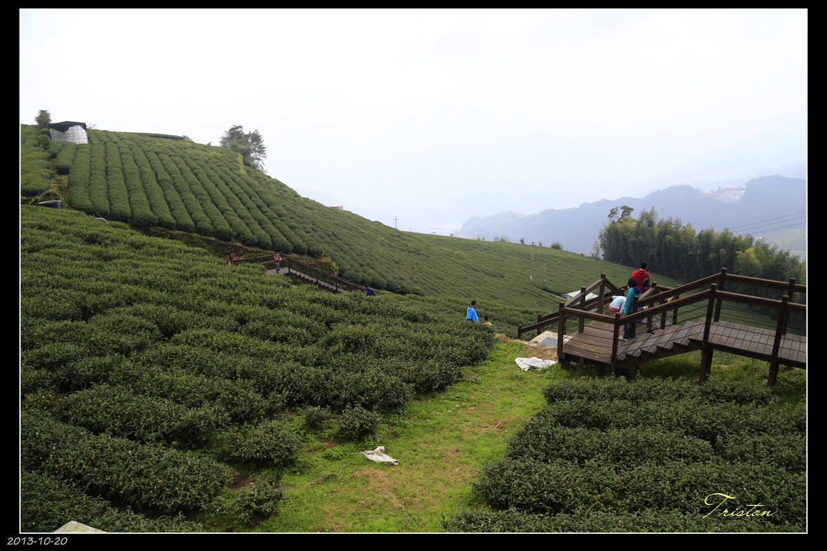 還沒下到階梯,在水泥路上就可欣賞到一片濃綠的茶園,伴著微霧和清香...