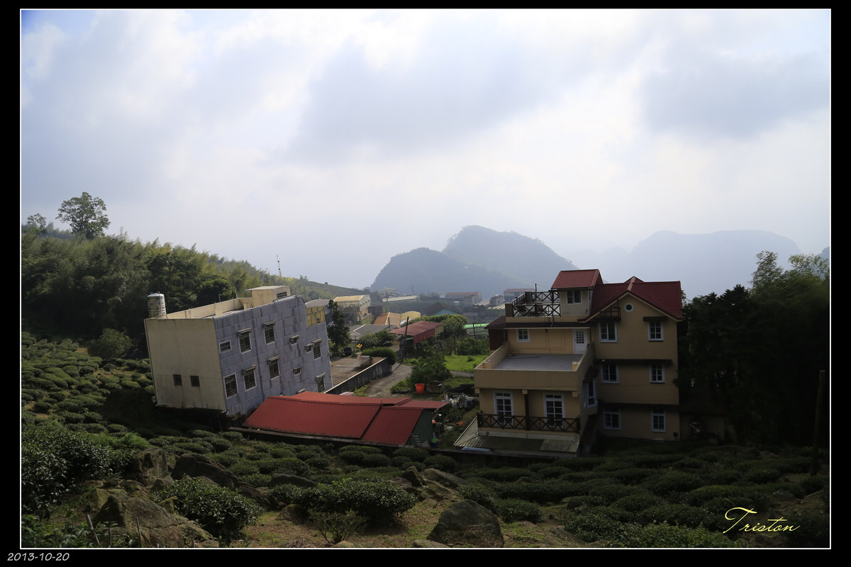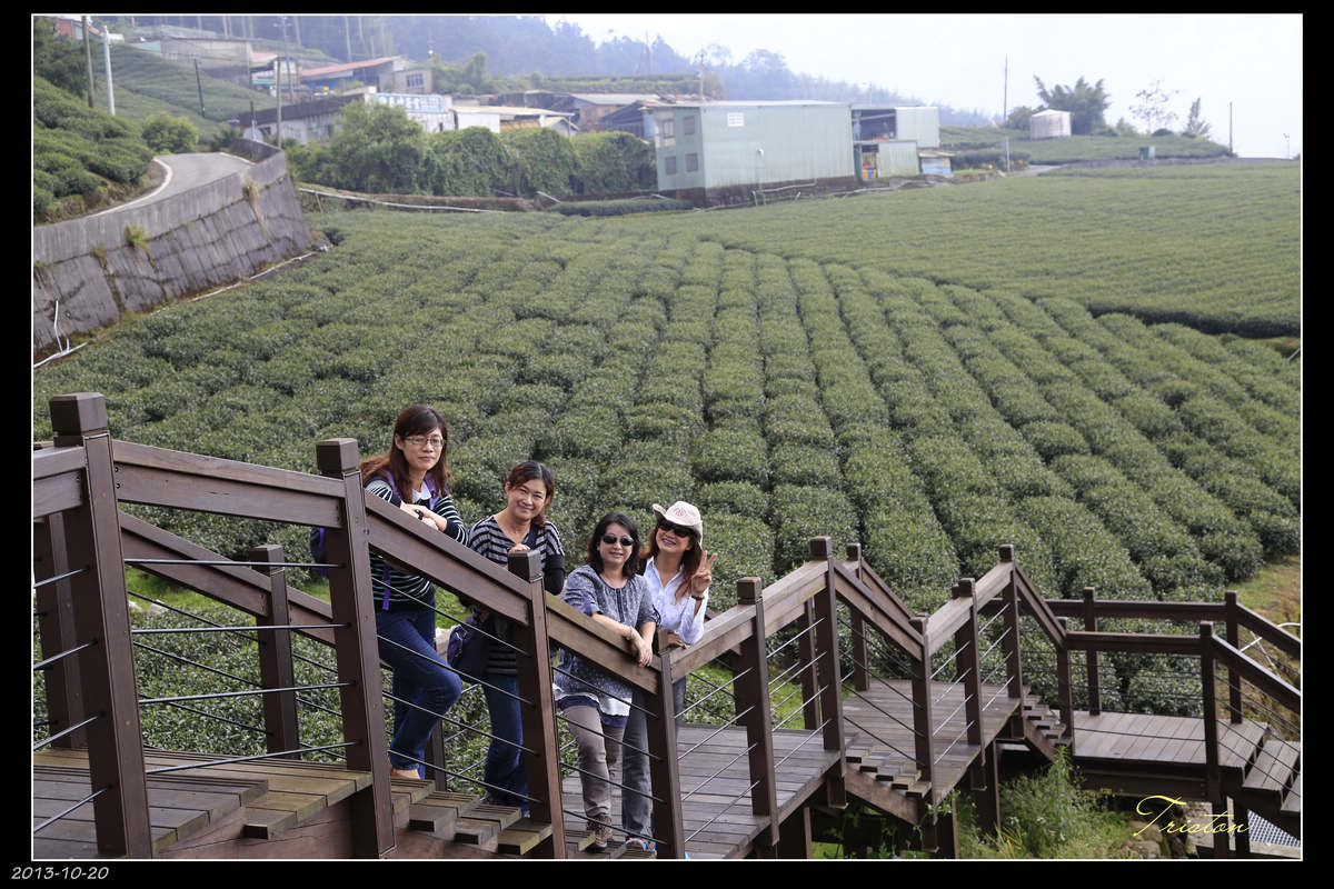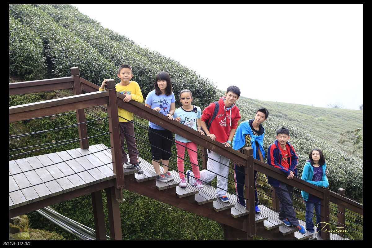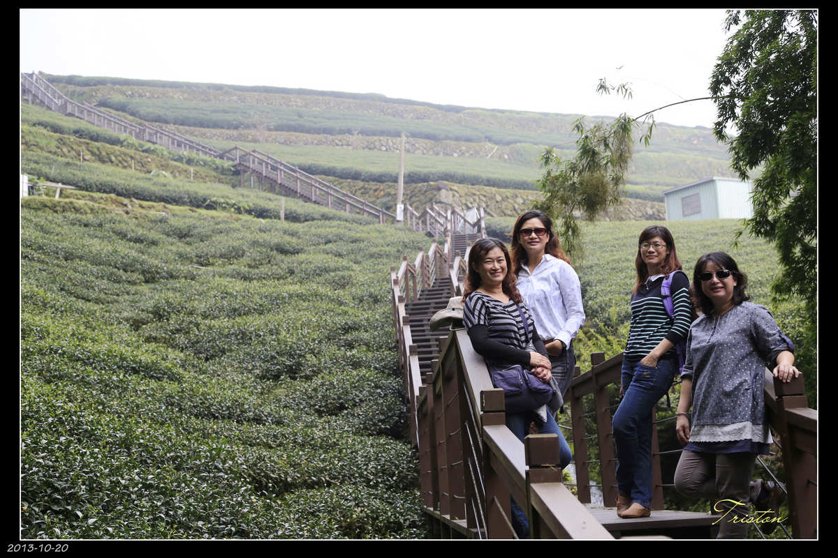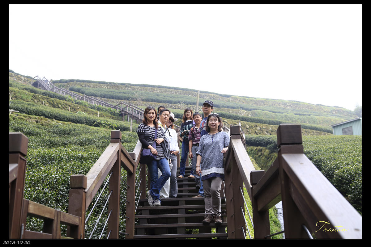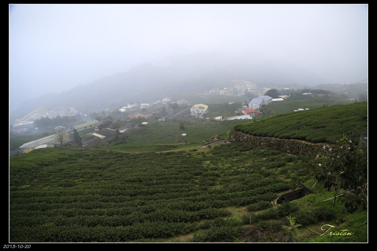 還沒下到階梯,在水泥路上就可欣賞到一片濃綠的茶園,伴著微霧和清香...