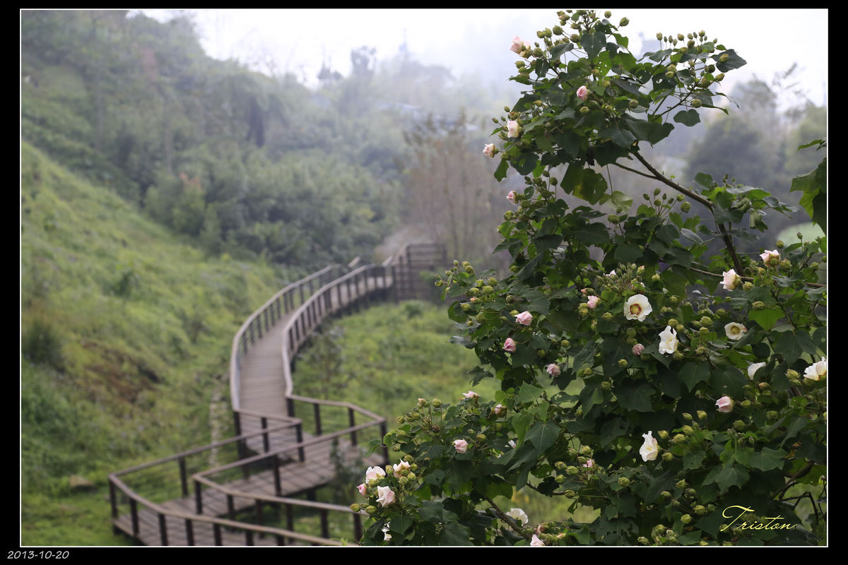 櫻之道步道更短,估計沒有二百米,能夠稱為櫻之道應該是種滿櫻花囉!但只看到一兩棵櫻花樹,倒是盛開的白色山芙蓉和豔紫的野牡丹搶盡了風采!