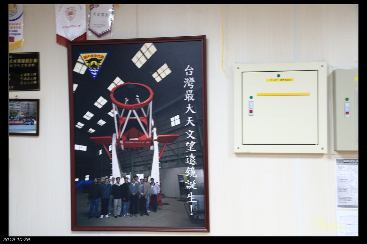 鹿林天文台內部掛了一部應該早已是台灣最大天文望遠鏡的掛圖,它口徑達2米,集光力就是目前台灣最大天文望遠鏡一米的4倍,但卻為了奇怪的政治和環評問題,建物無法興建,以致於這部台灣最大天文望遠鏡只能在倉庫中等待,靜靜地看著國外對手不斷的超越它!
