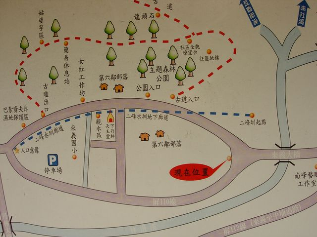 再往水圳旁的道路上行,在路的左手邊有個喜樂發發森林公園。這是"喜樂發發吾"社區,但是森林公園卻叫"喜樂發發",實在搞不懂原住民語後面的意思...