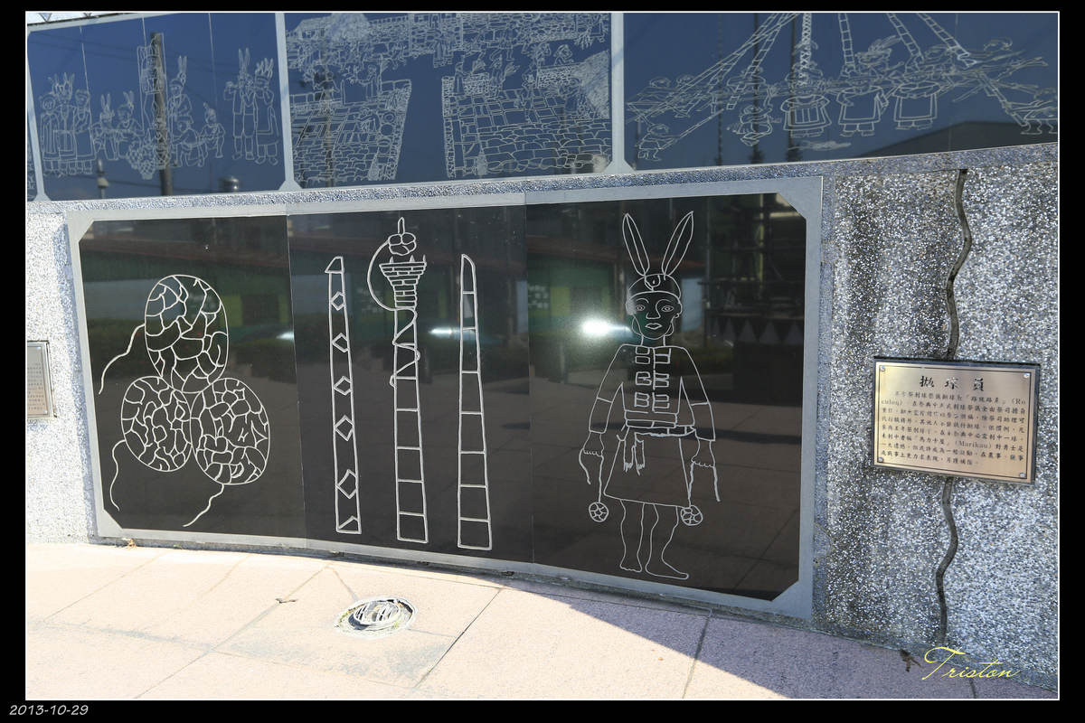 在牌樓的左手邊是一個五年祭的廣場,在這個廣場裡,用石板雕繪著五年祭的過程