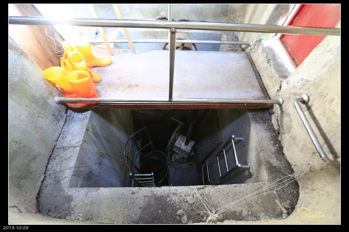 把相機伸進去方形進水塔所拍的內部,塔內據說寬約5尺,高約28尺