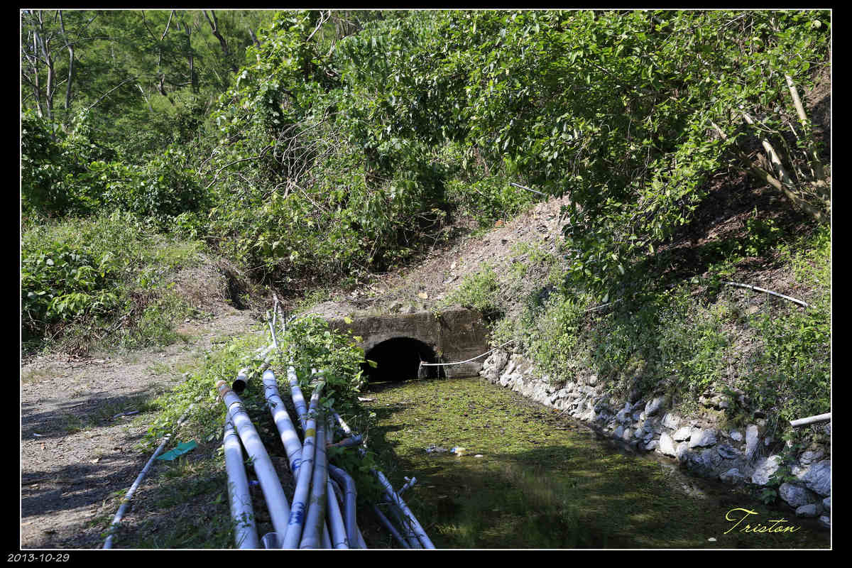 由親水區涼亭望去,可以看到由集水廊道取的水經過穿山隧道後,在這裡露出地面。