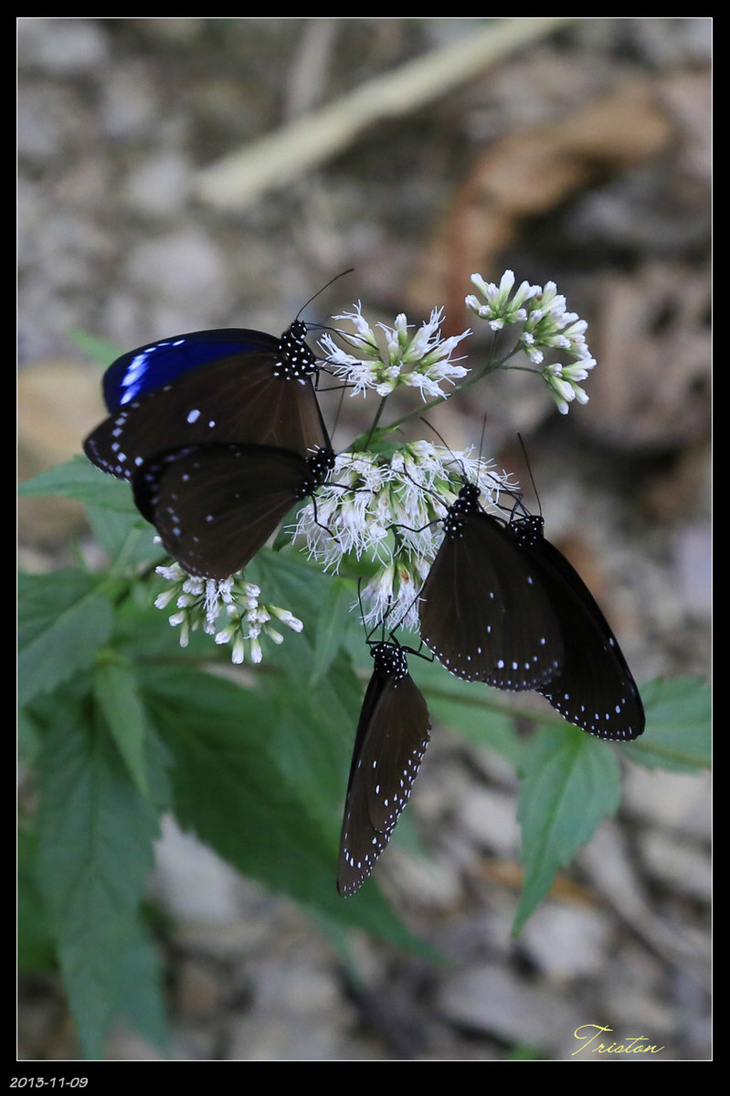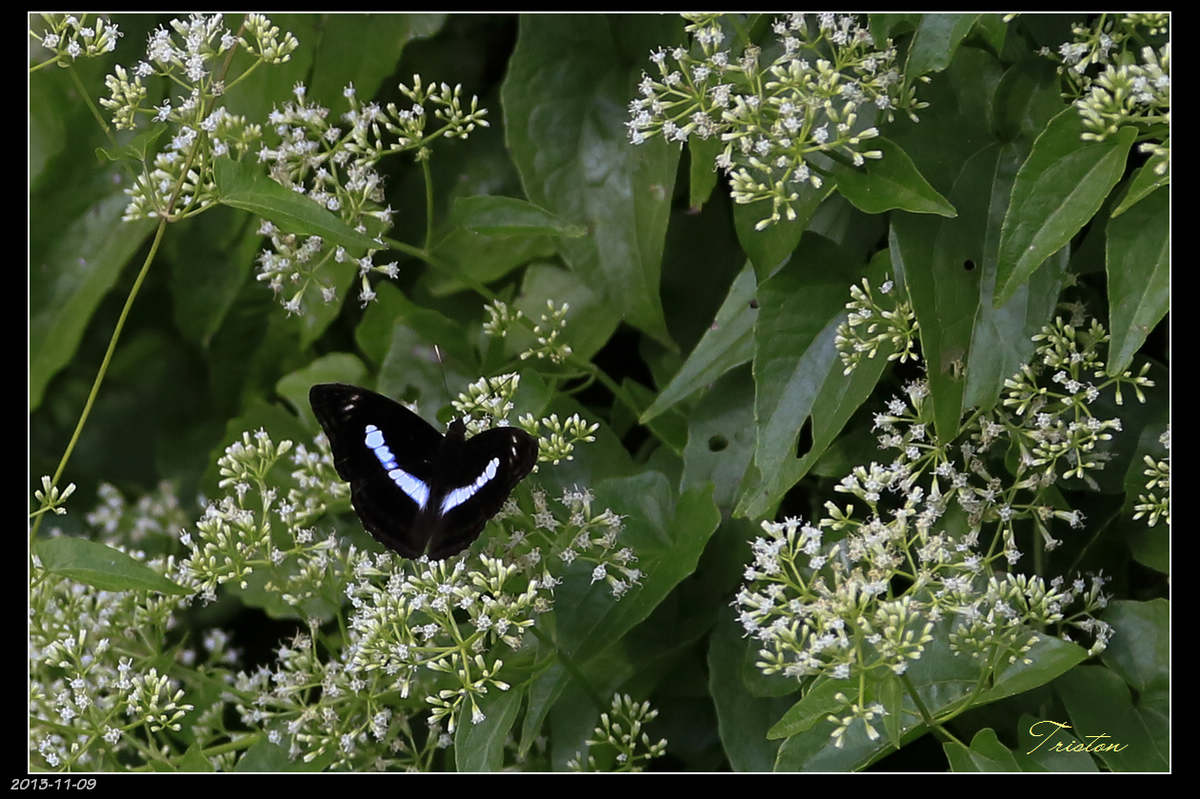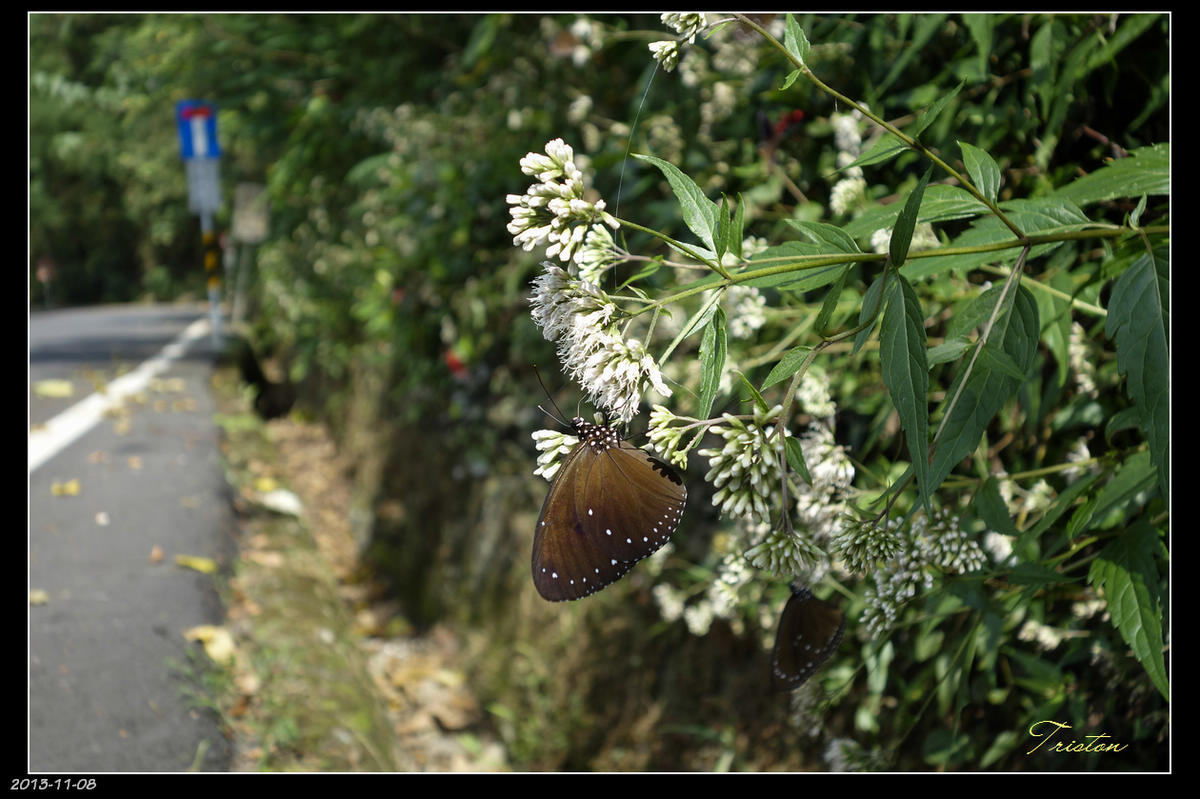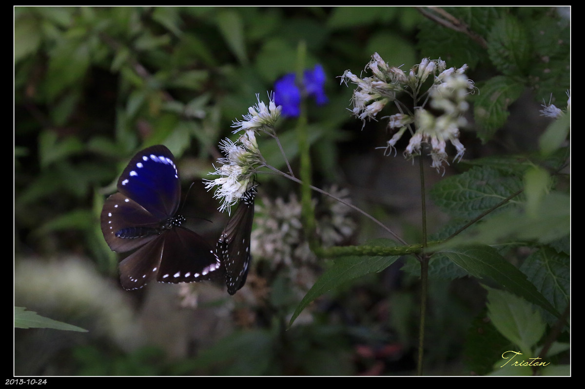 蔓澤蘭上的異紋帶蛺蝶(?)一邊吸一邊繞個花朵轉圈圈...講了通電話還在吸,可真專注的。