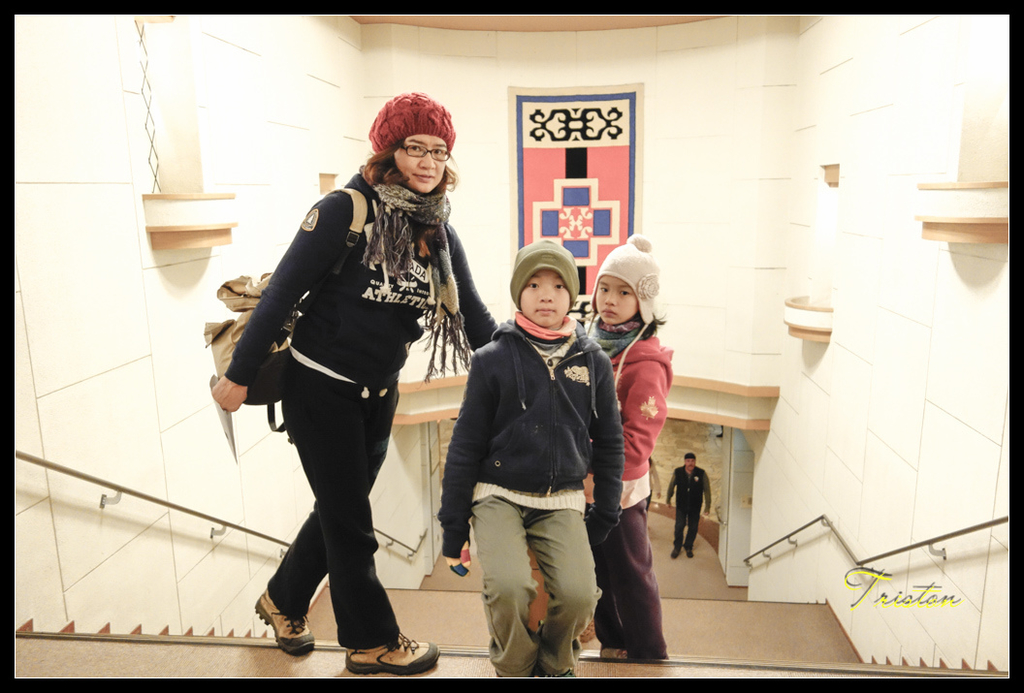 雖然是零下十八度了,可阻止不了我們的興奮熱情,穿著不算厚的外套,就想衝出去感受一下極度的低溫,就像進去冰箱的冷藏庫一樣,涼涼刺刺的冷感襲上身來,但是其實也不會覺得冷到受不了....沒有台北那種濕冷鑽入骨的難受啦!