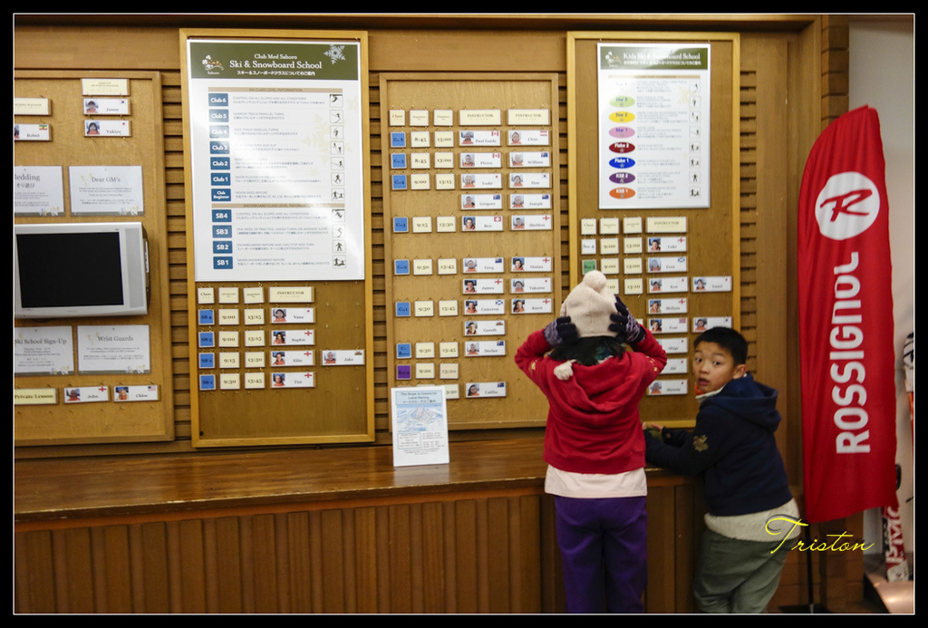 牆上是各種滑雪級別應具備的技巧和各級別的負責教練,幾乎全是歐美和日韓的啦.....這也沒什麼好意外的嘛....