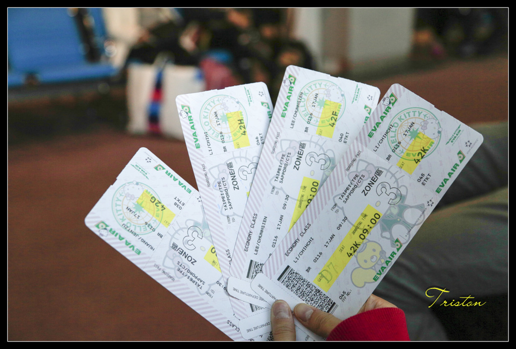今天搭的是長榮航空桃園直飛札幌的Hello Kitty包機,9:30起飛的航班,我們可得半夜三點半就由台南開車,一路直奔機場,為了玩,披星戴月,辛苦啊!