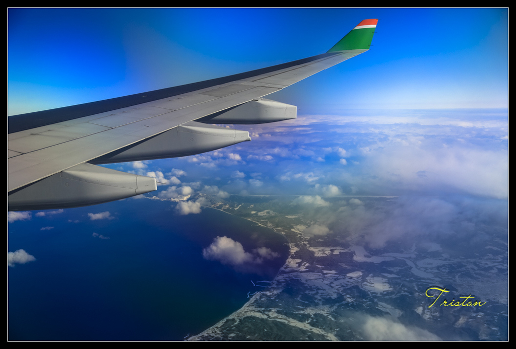 飛機沿著日本本州島北上,開始穿越津輕海峽.....沿著海岸線向上延伸,莫非就是石川小百合歌中的龍飛岬...
