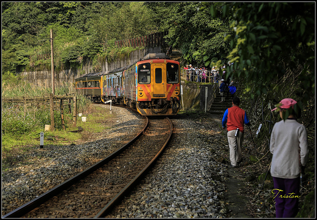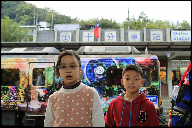 終於決定不再翻山走回野人谷的桃花源渡假村,七十多人擠上開往十分的列車,這一下子也蠻可觀的