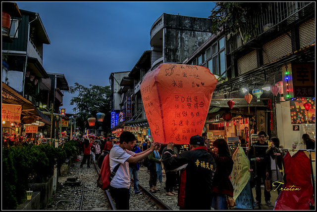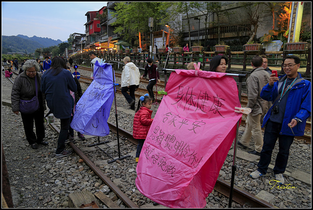 十分這裡和平溪一樣,鐵道上到處是放天燈的人...寫了這麼多願望,不會飛不上去嗎?