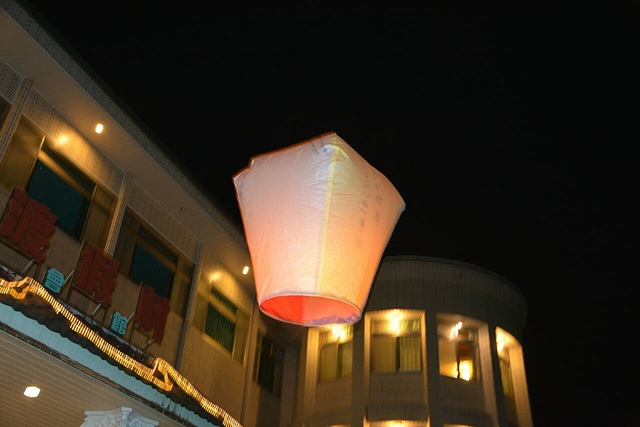 望著天燈冉冉昇空,慢慢地消失在黑暗的夜空中,心中真的會有一點點的感動,好像自己寫的什麼願望啊祈求啊,真的乘風而去了...嗯..還是蠻令人舒服的......很幸福了..
