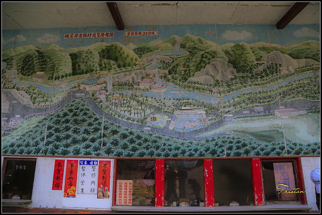 在一陣迷航後,終於到達登山口,好大的停車場旁有個"野人谷 桃花源渡假村"的牌樓,這裡果然隱秘,如果不是有人帶,一下子還真找不到這個地方,難怪這個渡假村混不下去了。太隱秘了.......
