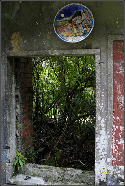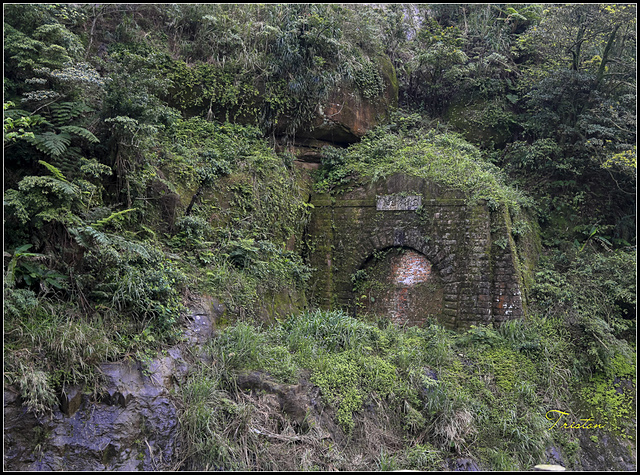 三瓜子隧道的遺址。與三貂嶺車站隔著基隆河對望的三瓜子隧道是北宜線的遺址,一直看不懂的北口匾額,原來題字人是台灣總督明石元二郎所題的"至誠動天地"..明石元二郎就是興建台灣總督府的時任總督,他是唯一一位於任內逝世及葬於台灣的總督。