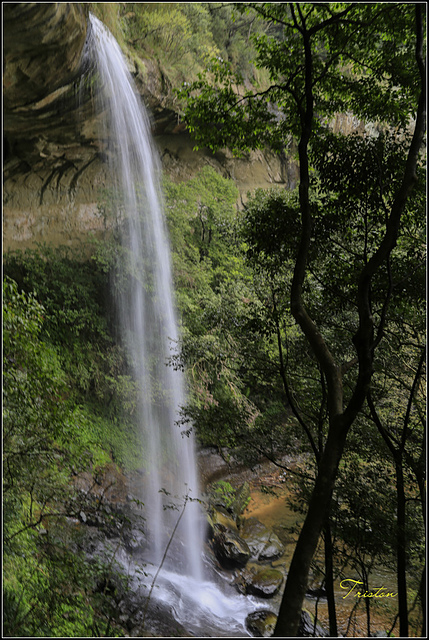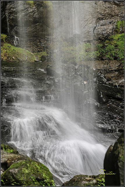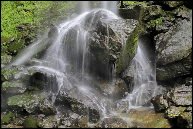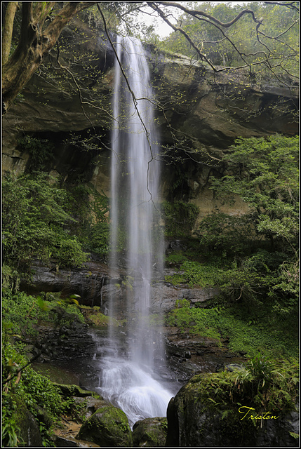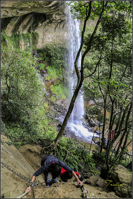 第二道摩天瀑布像一道絲絹地從天而下,長約十來米,只可惜觀瀑平台已經破損,而且再來是九十度的攀爬了...大家幾乎不多做停留繼續往前進...