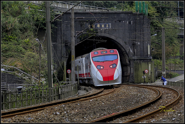 沿著平溪線鐵道散步回到北宜線幹道,這裡的三貂嶺隧道是來往宜蘭的重要出入口。不時有南來北往的列車通過