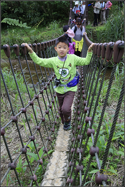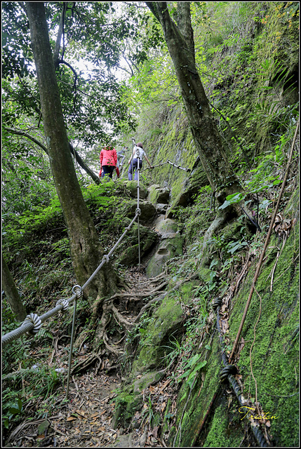 但路還沒完,如果要到瀑布頂端去,還得再上一段,這一段短點,但可沒有比較輕鬆....對比三歲時兒子第一次和我們走中之關古道時的樣子,今天真是不可同日而語