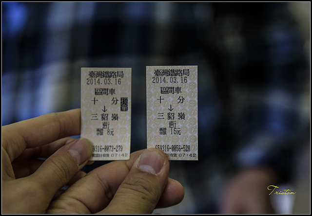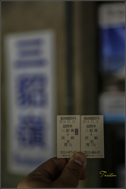 火車來了。拿了三貂嶺的車票。三貂嶺,有趣的名字。這地名竟然有大大的洋味,是西班牙人將此地稱為「Santiago」(聖地牙哥),並相傳於此建立聖地牙哥城堡,以後台灣人以台語將「Santiago」轉音成「三貂角」因而得名,和富貴角都是同為源於歐洲語言之地名。富貴角是荷蘭人取的「hoek」,意思為海岬,後人便採其譯音稱此地為「富基角」,直到日治時期才更名為「富貴角」。
