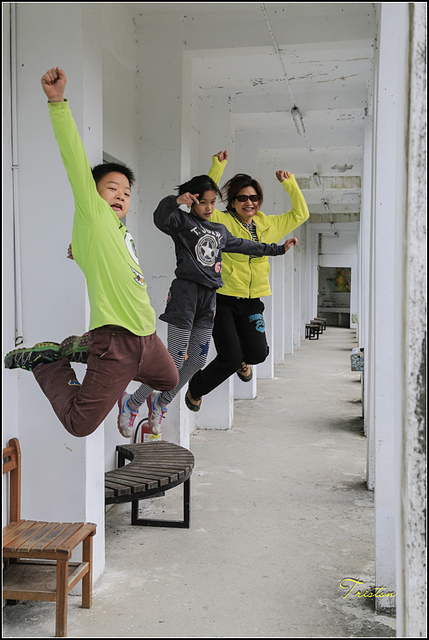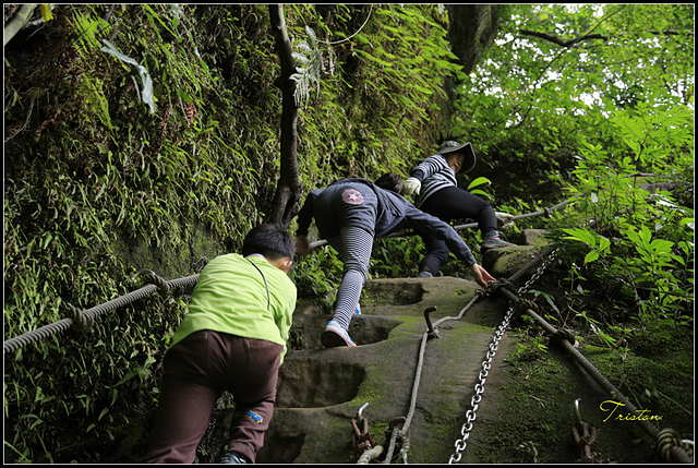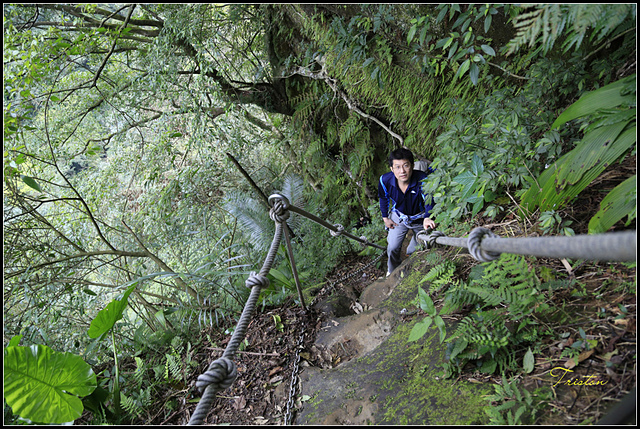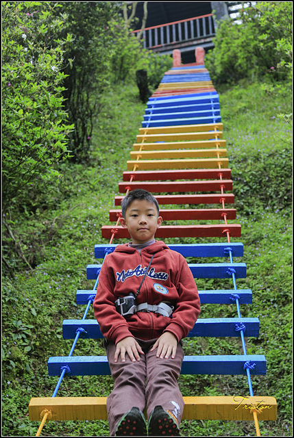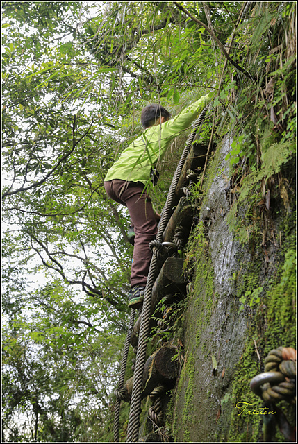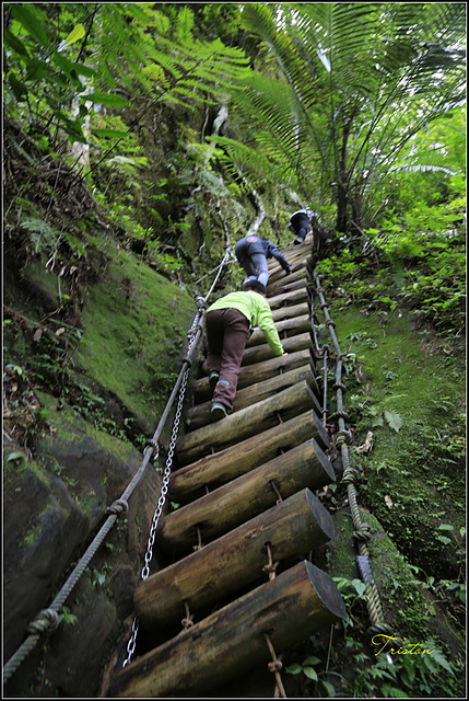 很抖直的木梯,大約有十來公尺,分兩段,前半段是木梯,後半段則是石壁上面鑿出來的階梯,小朋友們一馬當先,絲毫沒有忸怩態