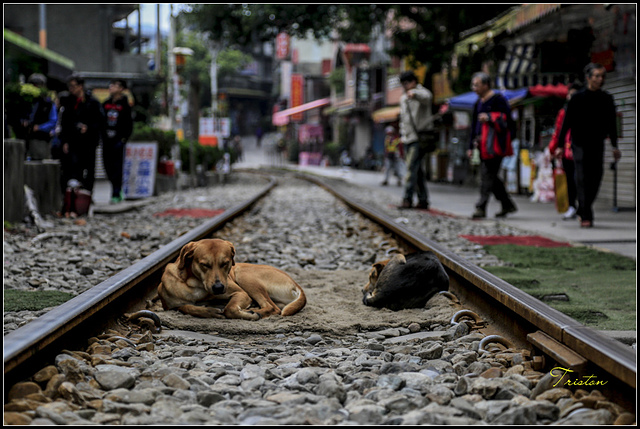 八點半,十分街上還很平靜,放天燈的遊客還在希望的美夢中,只有幾隻老狗守候著。