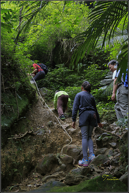 今天要走的三貂嶺步道,沿路好走,如果順利的話,可以完成三道瀑布的探訪。合谷,摩天,枇杷洞三座瀑布。嚮導一開始有先警告我們了,後段有幾段九十度的攀爬,先讓大夥兒有點意識.....