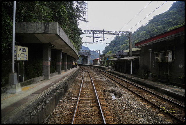 即將抵達可愛的三貂嶺站。三貂嶺站是北宜線和平溪線共會的車站,鐵路已經電氣化。雖然遊客不多,但是來往車次倒是蠻頻繁的