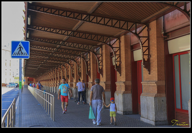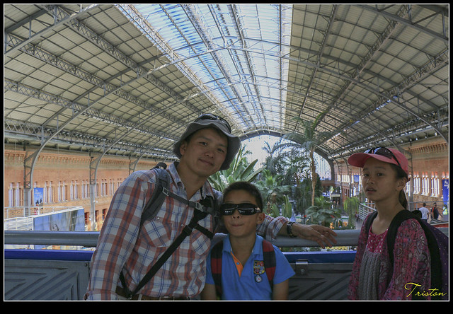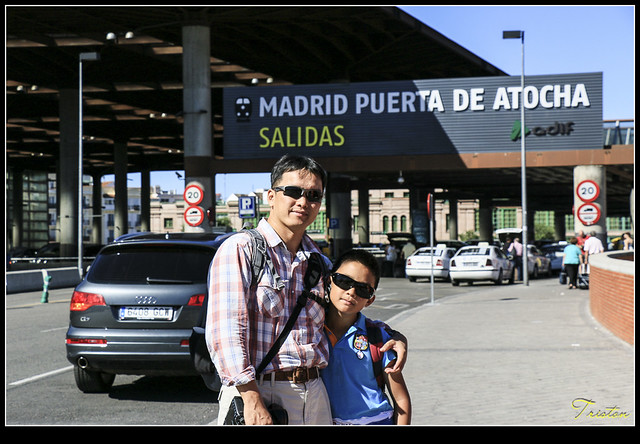 哦!才發現,原來它的站體大多地下化了,左前方的白色玻璃塔竟然是馬德里火車爆炸紀念塔,這是西班牙政府為了悼念2004年3月11日發生的舉世震驚的爆炸案,造成192旅客罹難1824人受傷。因此為“FAM Studio”設計,在馬德里火車站前,圓環廣場中地鐵站的上方¸,豎立一座11公尺高的圓柱狀玻璃塔。只是當時真的不知道,以為只是普通的通氣塔,真是失敬!失敬!