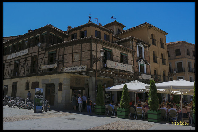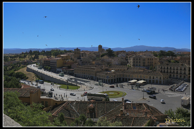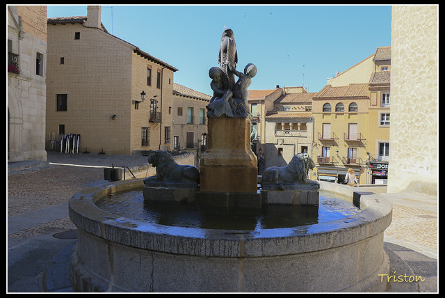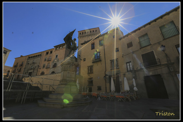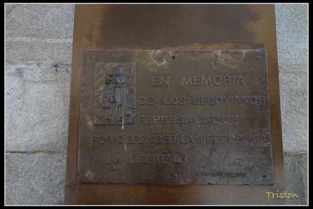 聖馬丁廣場上,有位塞哥維亞英雄的銅像,原來在1519年,伊莎貝拉女王的外孫查理五世當選神聖羅馬帝國皇帝,為了帝國的行政,西班牙增加了許多無謂的稅收,於是亞維拉,托雷多,薩拉曼卡和塞哥維亞等城市都反對,最後引發了內戰(公社起義),1521年,革命軍失敗,三位革命軍首領被斬首,其中代表塞哥維亞就是廣場上的璜.布哈佛(Juan Bravo)。雖然他失敗了,但是市政府仍為他立像,西方某些詮釋歷史的角度,的確令人刮目相看,雖然終究成者為王敗者為寇,但敗者仍可被視為英雄。