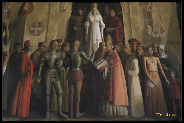 進入另一歷史場景,西元1474年12月13 日,伊莎貝拉公主的哥哥恩里克四世Enrique IV de Castilla去世,伊莎貝拉公主在這個主廣場自立為卡斯提爾女王,在塞維亞阿拉伯王宮(阿卡乍堡位置)接受加冕。然後和自己的十五歲的姪女胡安娜和她的舅舅(也是胡安娜的老公)葡萄牙國王阿方索五世(亂了吧?)打王位繼承戰,在圖合之戰戰勝,也確保了伊莎貝拉的王權。