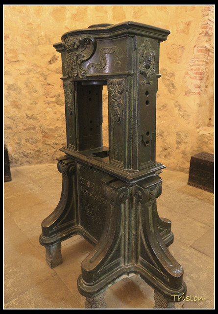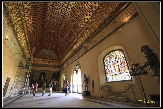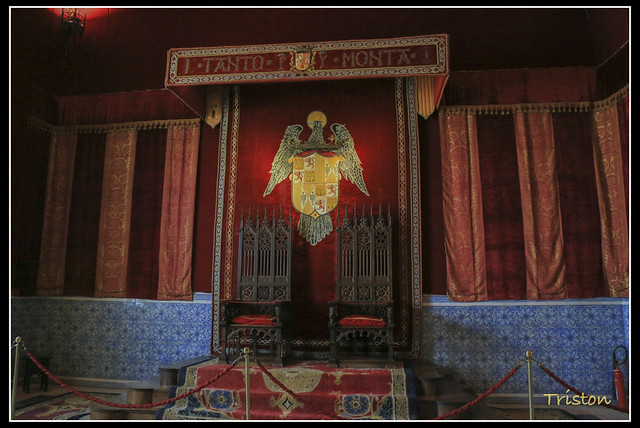 簡單的王座,其後的紋章是代表伊莎貝拉女王的卡斯提爾和雷昂王國和斐迪南國王的阿拉貢王國,這些紋章,都會不斷的在這裡,以至於出現在現代西班牙的國旗上。伊莎貝拉女王的加冕典禮與斐迪南的結緍典禮都是在這裡舉行的。他們的婚禮又是另一段故事,雖然充滿了政治權謀和算計,卻是冷淡而平靜。因為他們有著共同的目標,統一西班牙。所以共產黨說的對:團結次要敵人,打擊主要敵人。而共同敵人往往是團結的最佳手段。