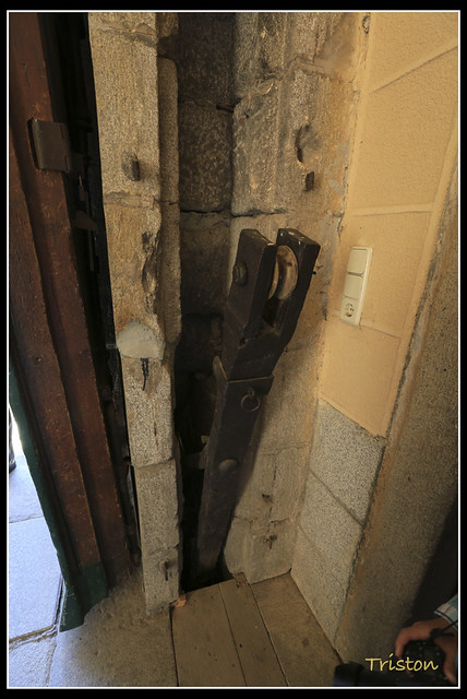 下了塔樓,真的在護城河旁看到拉吊橋的連桿....
