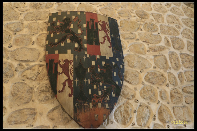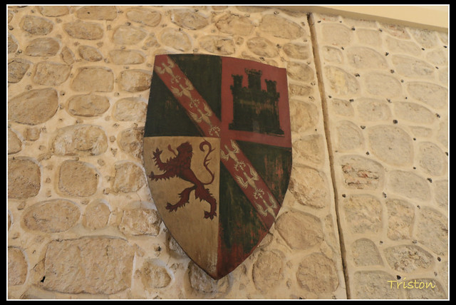 獅子原是雷昂王國象徵,城堡則代表卡斯提爾,1230年雷昂王國併入卡斯提爾萊昂,成如今的卡斯提爾盾牌