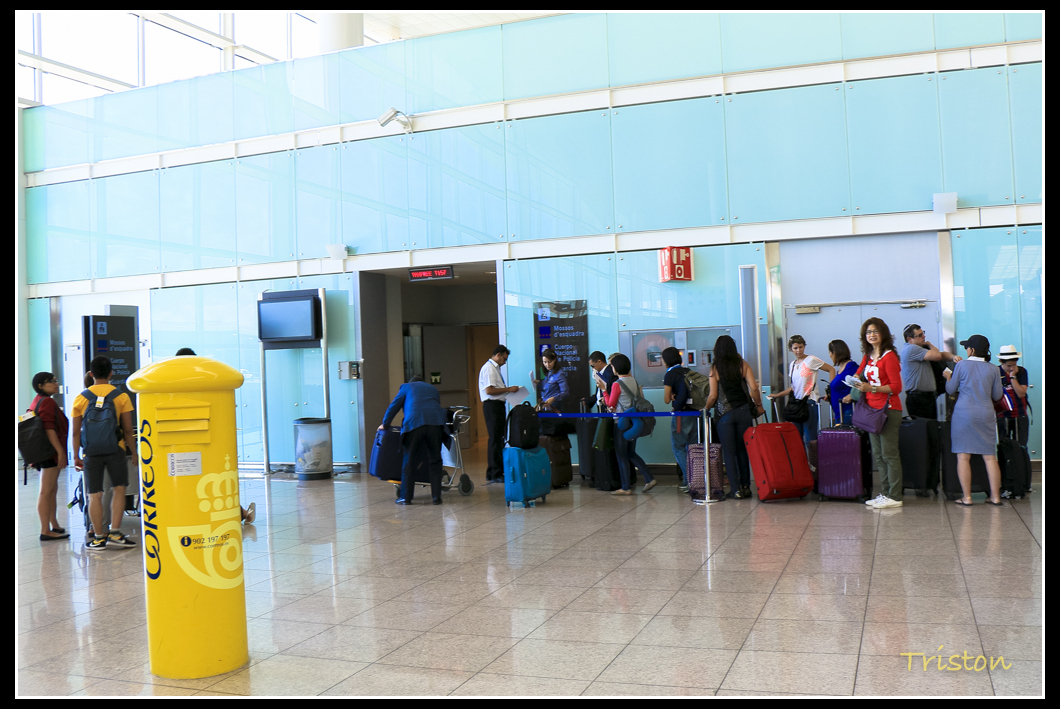 好吧!列車進巴塞隆納進機場是在T2航廈,所以又得搭免費的 shuttle bus 到 T1 航站。第一件事,找退稅的。我們雖然不是大刷手,但也沒對不起西班牙,算是對西班牙經濟做出了小小的貢獻,對了。西班牙退稅有兩大退稅公司,分別是Premier tax free和 Global Blue。反正不管,進到海關驗完章後,如果要退回信用卡,就把退稅單丟進黃色郵筒,我們是比較喜歡現金啦!所以較麻煩,得出關後,找la Caixa銀行的櫃台要錢