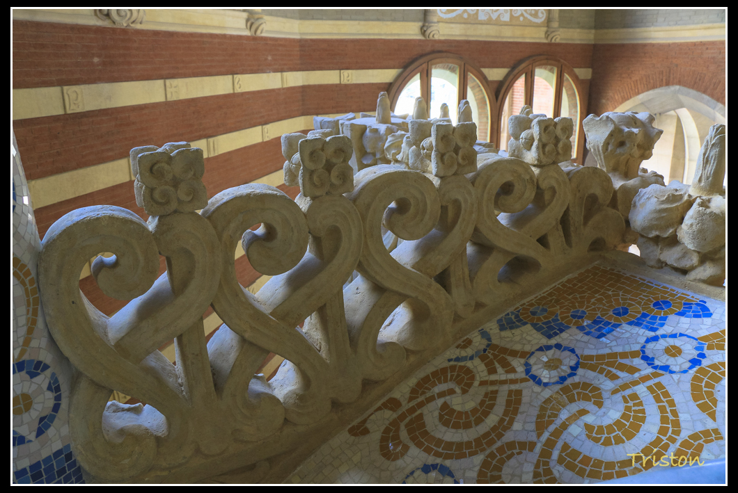 和高第相同,多明尼克也被劃分為加泰羅尼亞現代主義的建築師,而這座醫院,命名裡雖然也有聖保羅,但其實,它的確是依照銀行家保羅吉爾的遺願而興建,當初他捐了一大筆錢,費時28年才完工。西方的富人,雖然賺錢很狠,不過捐錢的氣魄的確也很令人敬佩,而且不僅要捐的多,捐的大,還要蓋的美,不然財大氣粗,蓋不出可以傳世的建築又何以使其美名留傳呢?這是我們的富人可以好好思考的....